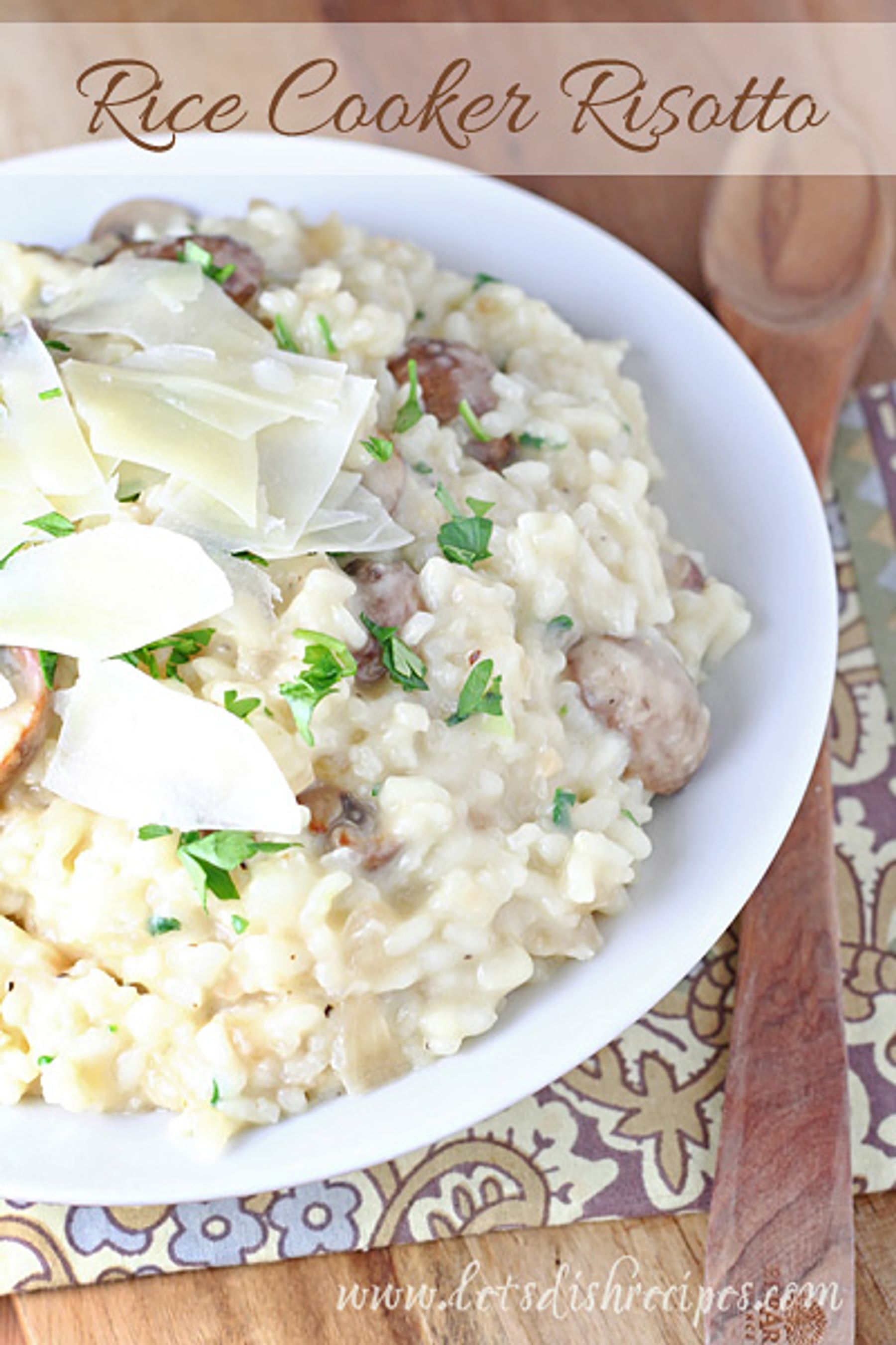 Place the rinsed and drained rice in the bowl of a rice cooker. Drizzle with 1 tablespoon of the olive oil and stir to coat well. Add 2 1/2 cups of broth and the salt. Stir well.