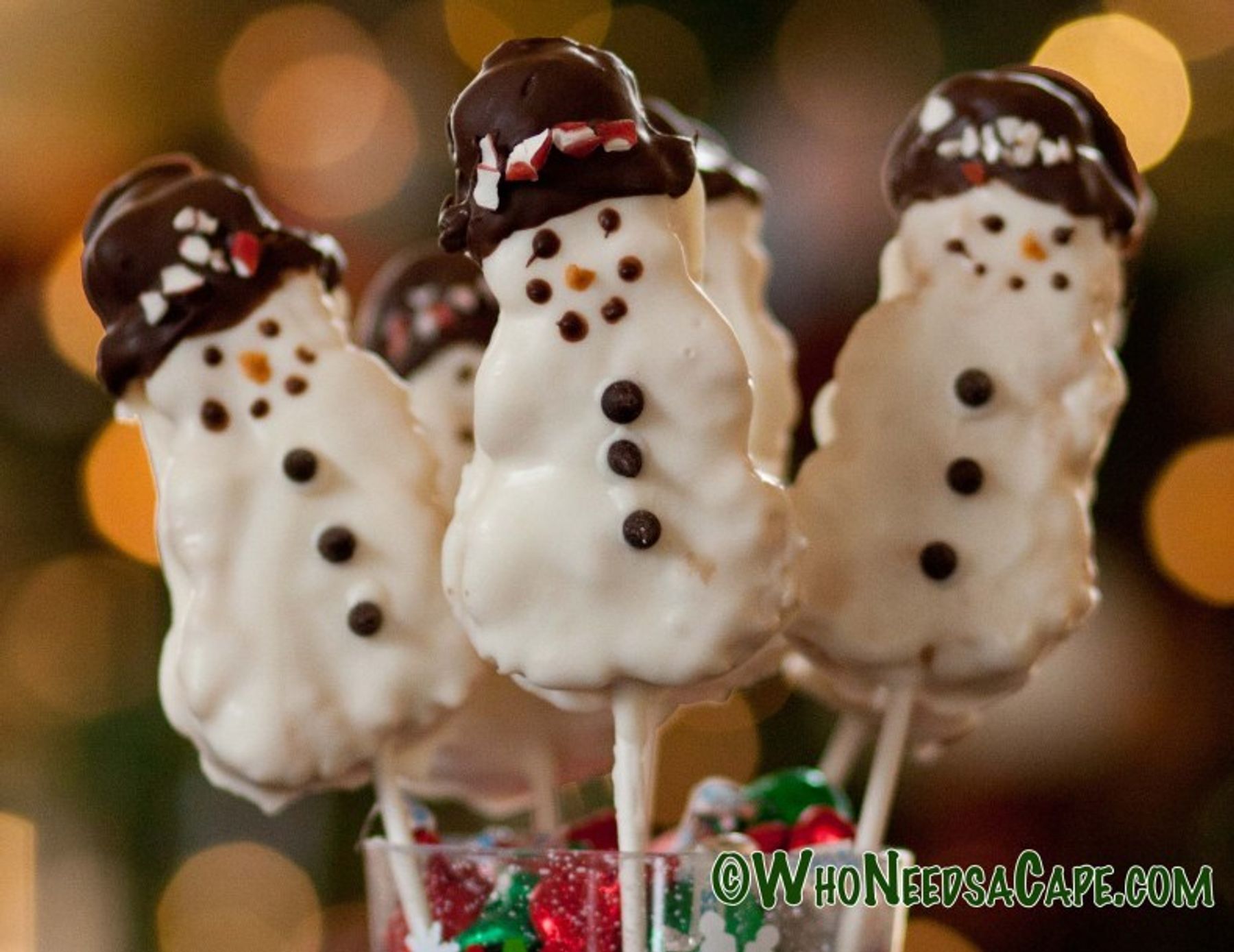 After about an hour of letting the treats set up, I started cutting out the snowman shapes with a snowman cookie cutter sprayed with cooking spray.