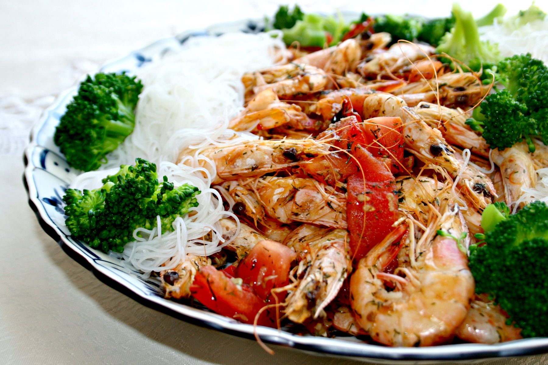 8. Put the noodles to the pan to warm up the shrimp and stir lightly with oil