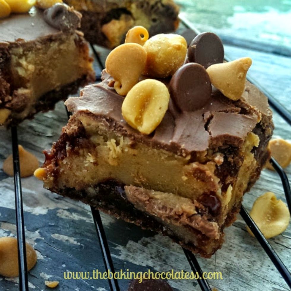 Heavenly, rich, creamy peanut butter and chocolate gooey deliciousness in a fudge brownie. Trouble. Trouble. Trouble :)