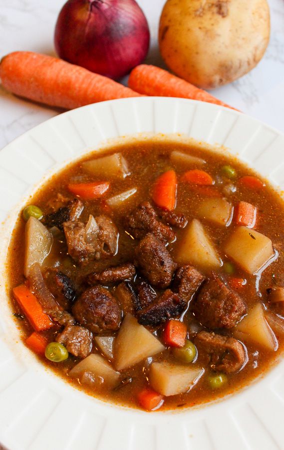 Rich and savory beefless stew DamnTastyVeganNovember 04, 2019 1246 Comforting vegan beefless stew with a rich and savory broth. This stew is hearty, satisfying and delicious and will warm you up on the coldest of days.6try itSee the full directions on my site veganbeeflessvegetarianslow cookercarrotsmushroomsgarliconionspotatoespeaswinterdinnermealeasy dinnerstew