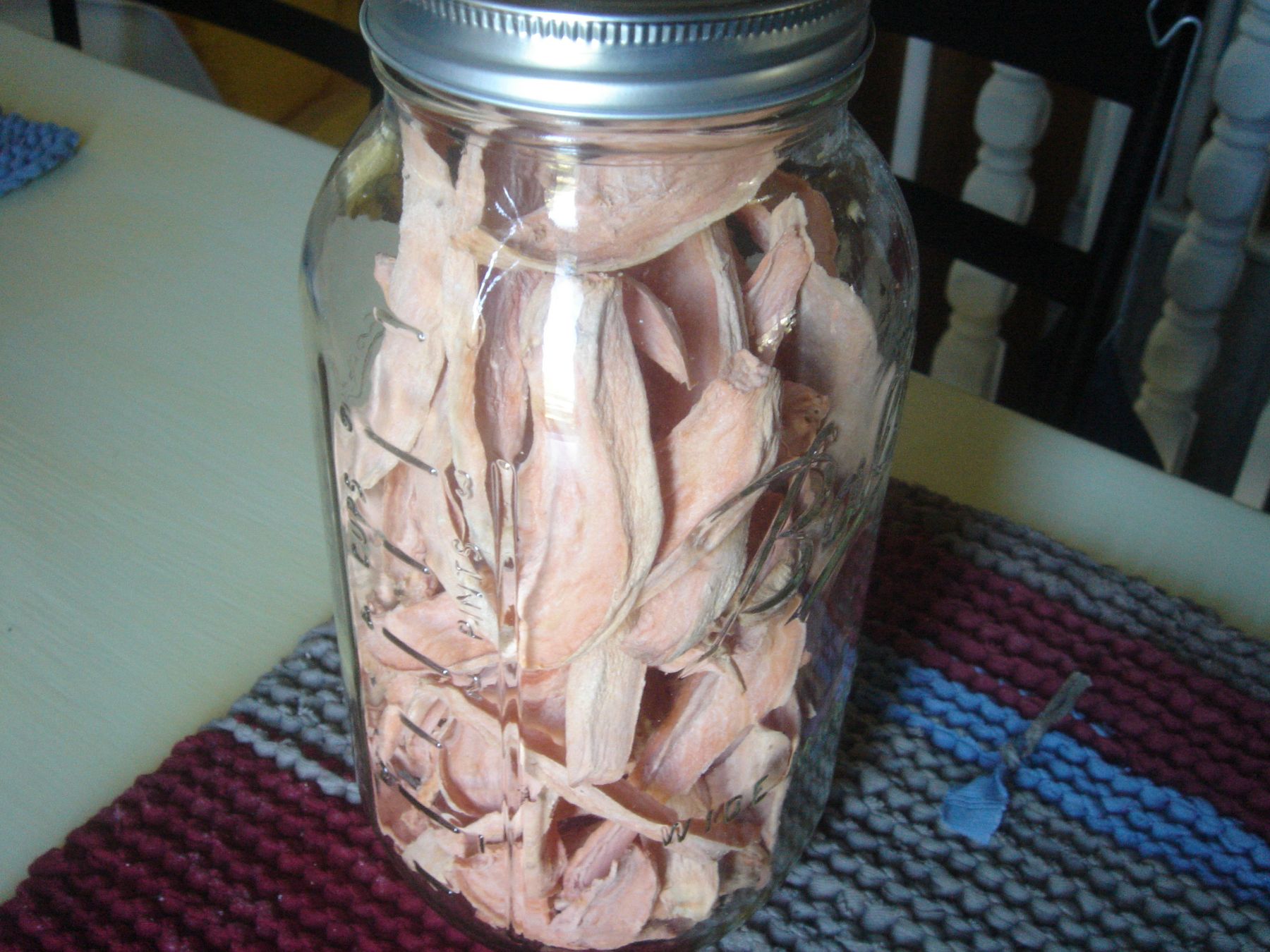 Slice the sweet potatoes length-wise. I know it’s kinda hard since raw sweet potatoes are tough to cut through, but do the best you can. If you have a smaller dog, you can always cut in smaller pieces – not...