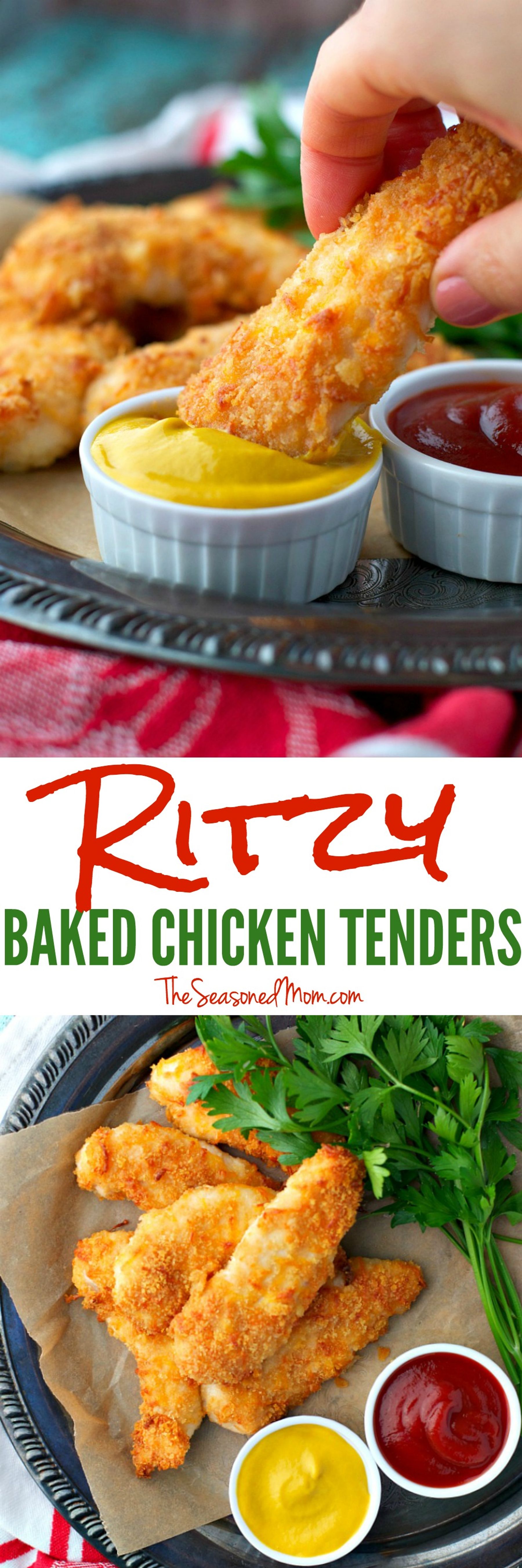 With only 10 minutes of prep, these Ritzy Baked Chicken Tenders are an easy way to make weeknight family dinners stress-free! Nobody can resist the crispy, garlicky, golden crust or the tender juicy meat inside. It’s like restaurant fare in your own kitchen — in just 30 minutes!