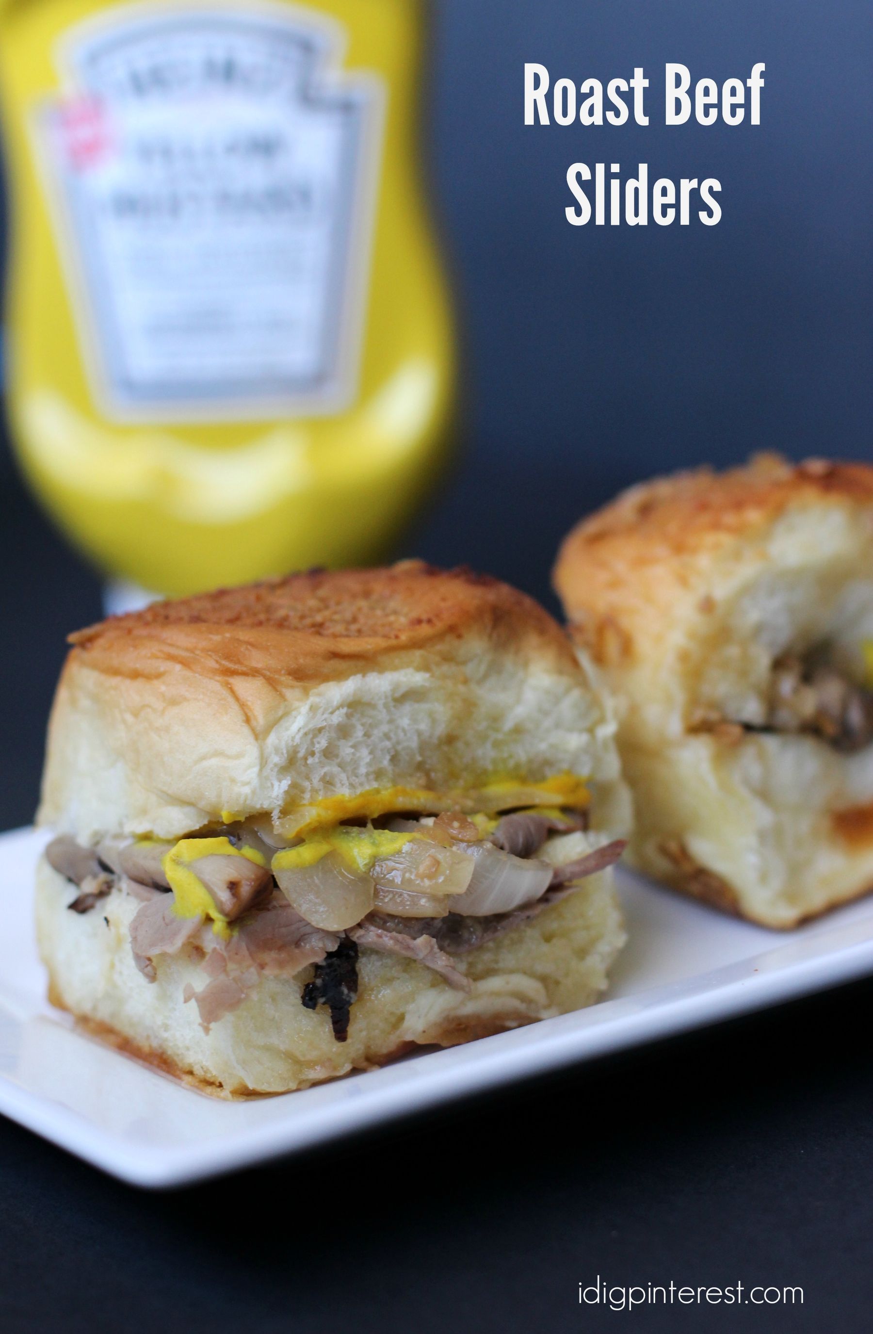 I'm a total slider fan, and these mini sandwiches, filled with sliced roast beef, Gouda cheese, sautéed mushrooms and onions and a drizzle of mustard are simply irresistible! They disappeared in a hurry at our family's dinner!