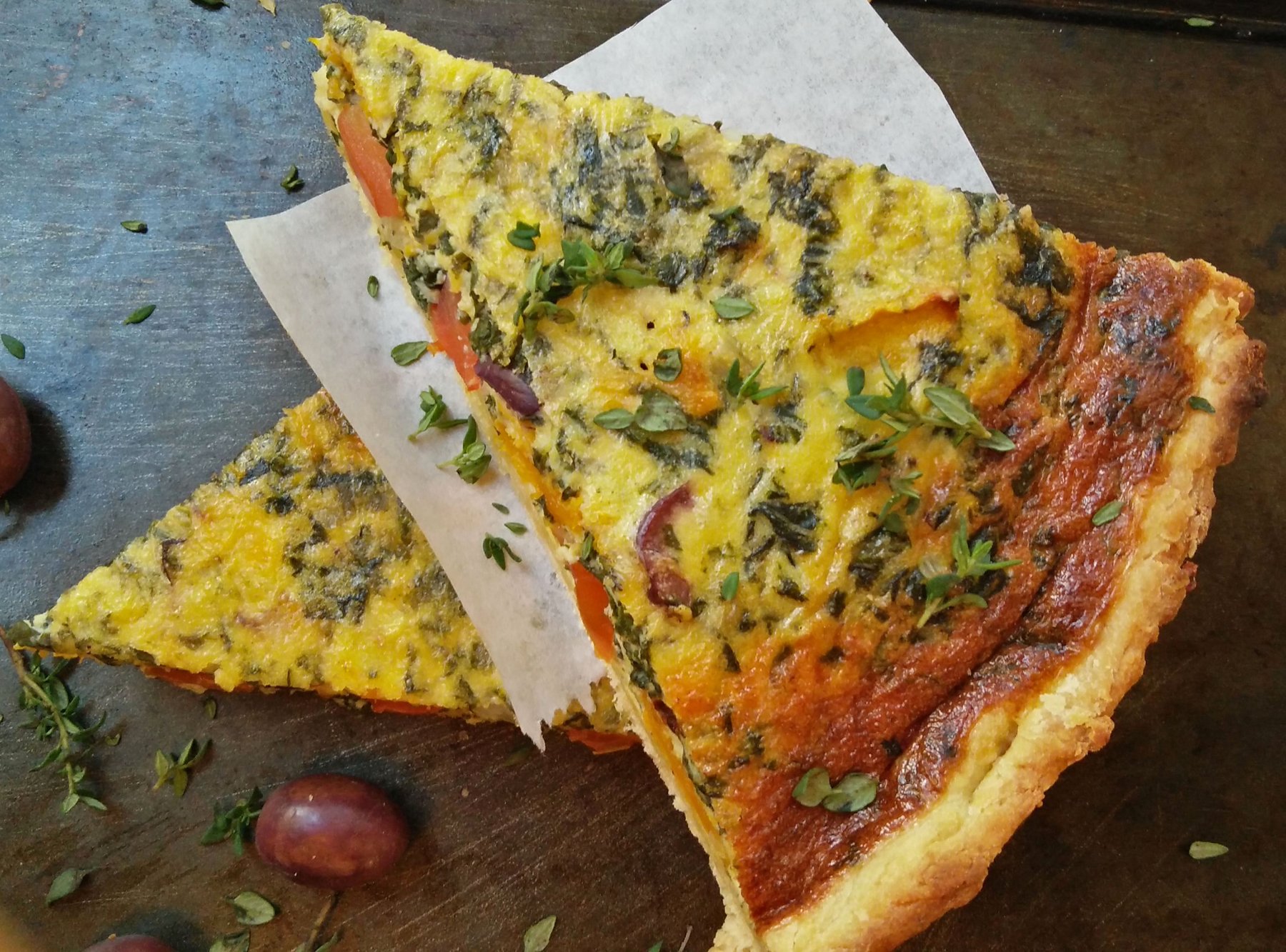 ROAST BUTTERNUT AND SPINACH QUICHE WITH OLIVES