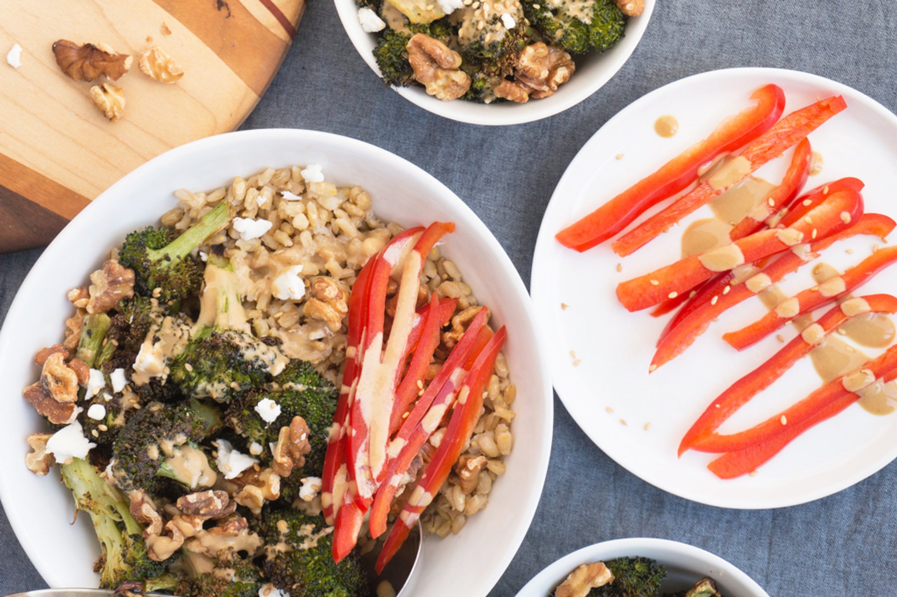 Roasted Broccoli Barley Bowls + Creamy Tahini Dressing