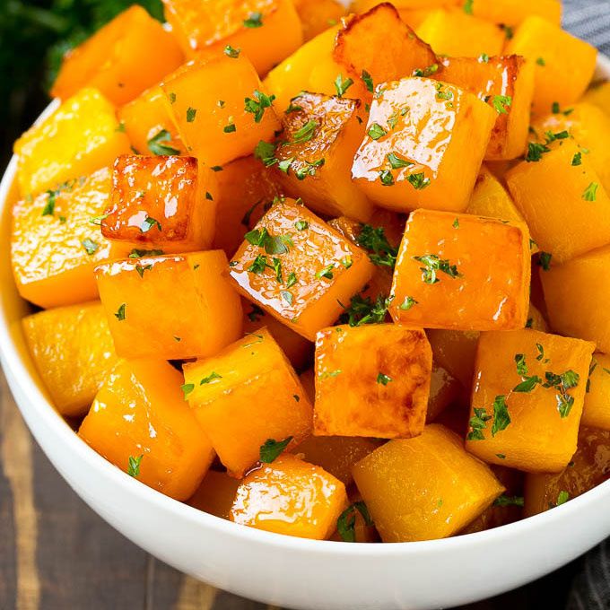 This roasted butternut squash is coated in brown sugar, maple syrup and seasonings, then roasted until tender and caramelized. The absolute best way to enjoy butternut squash!