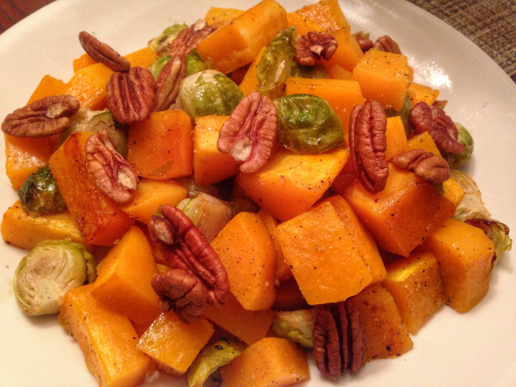 Roasted Butternut Squash with Brussels sprouts, and Pecans
