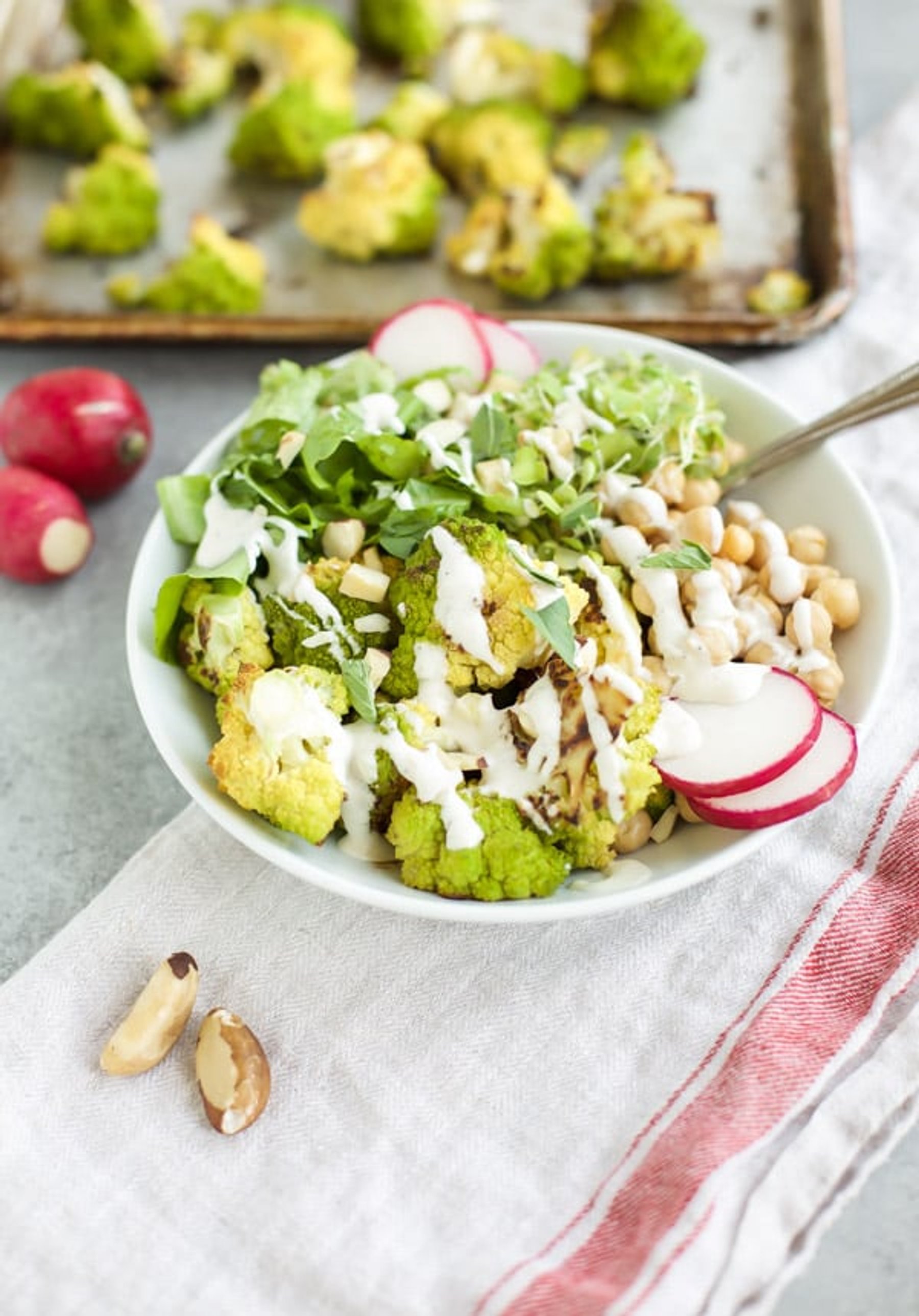 This Roasted Cauliflower Bowl is filled with summer seasonal goodies. It’s packed with good for you cauliflower, chickpeas, sprouts, and arugula. Topping it with a creamy dressing and brazil nuts ensures you get some fat to keep you full. {gluten free, vegan} Eating healthy is so much easier in the summer. Don’t you agree? With all...Read More