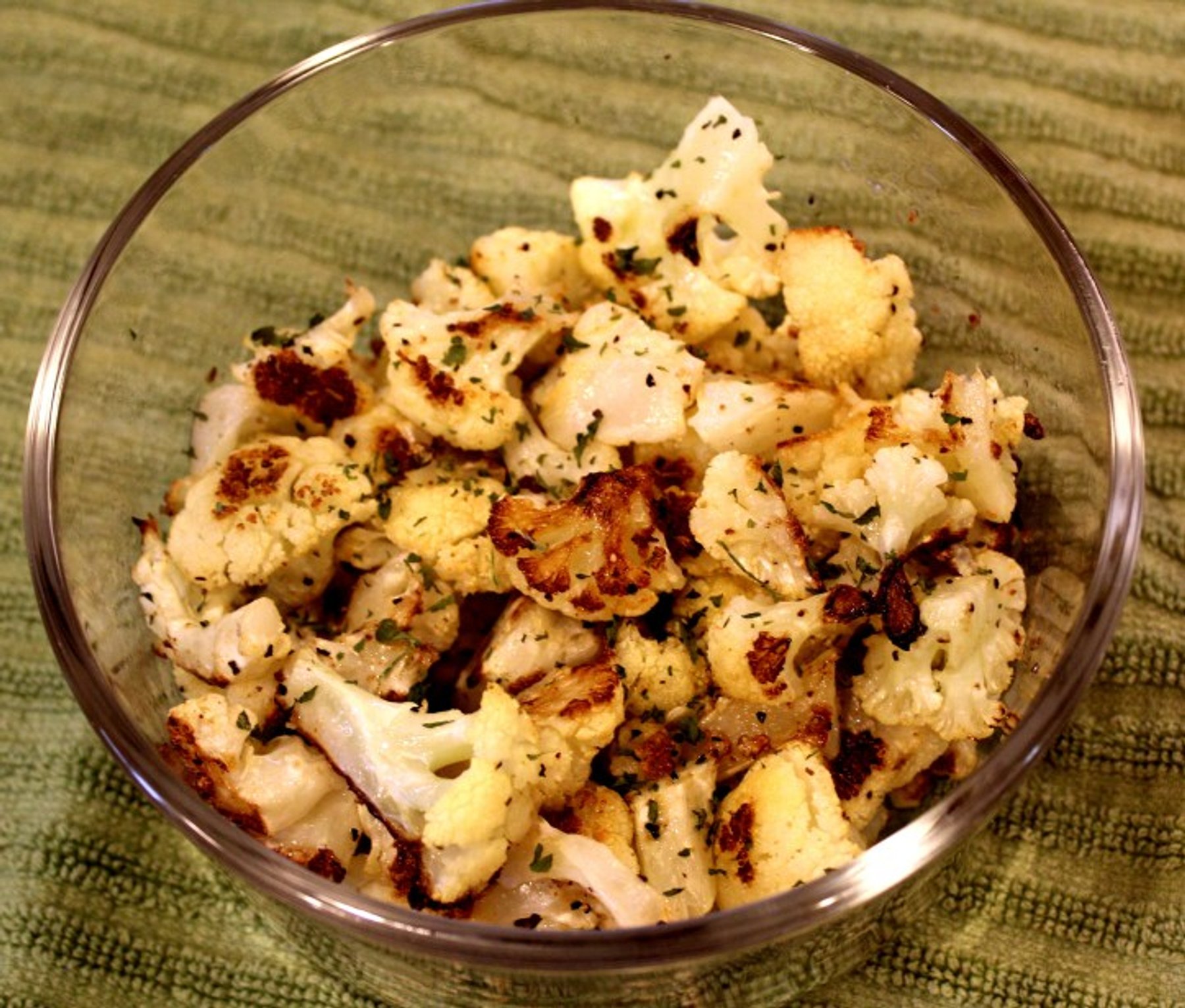 Cauliflower roasted in olive oil, garlic, salt and pepper – easy and delicious!