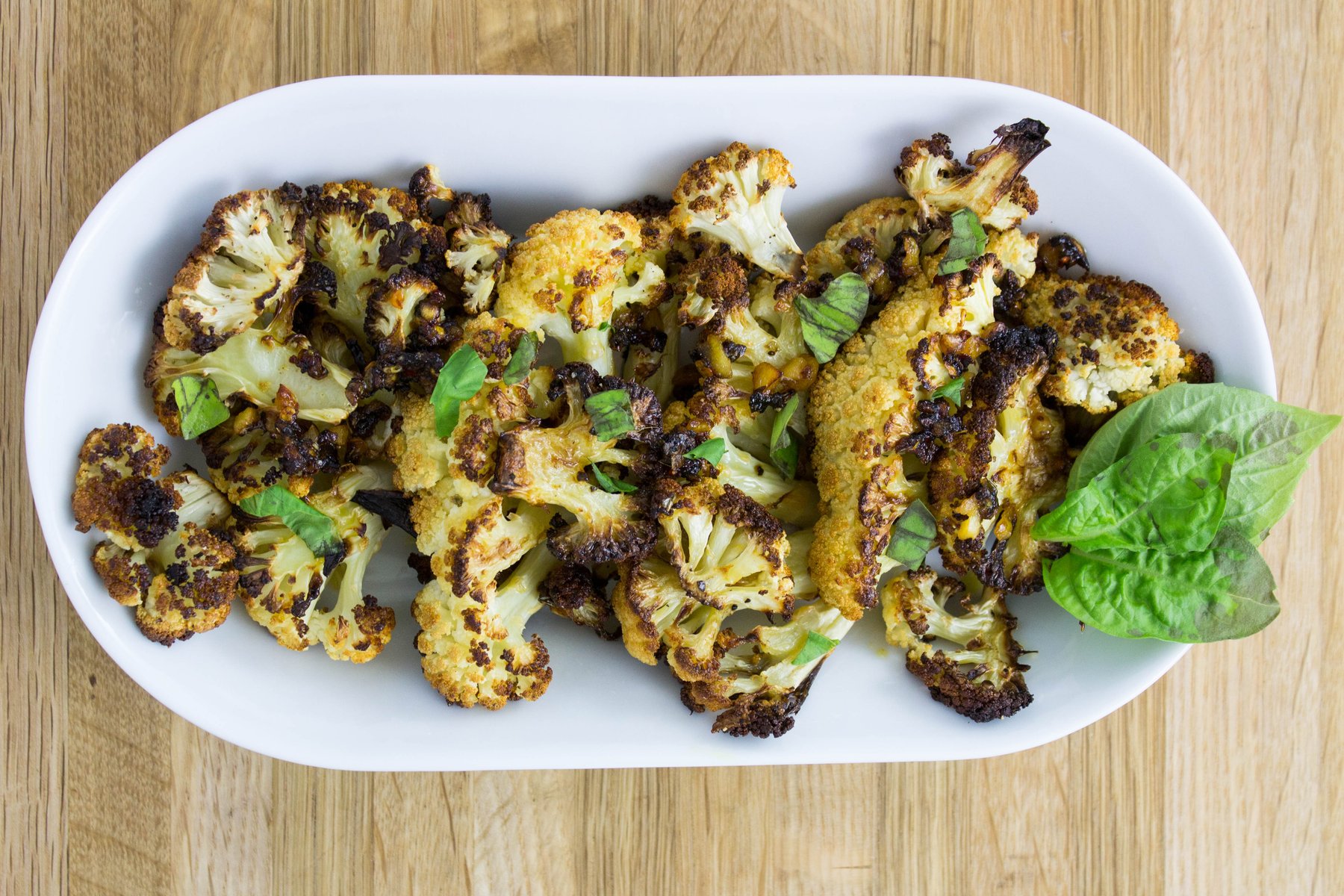Roasted Cauliflower with Butter Sauce-Perfect side dish for any meal. Crispy cauliflower coated in delicious herbed butter sauce is heaven in each bite. So delicious you will convert those non-cauliflower eaters to love cauliflower! Weight Watchers friendly.