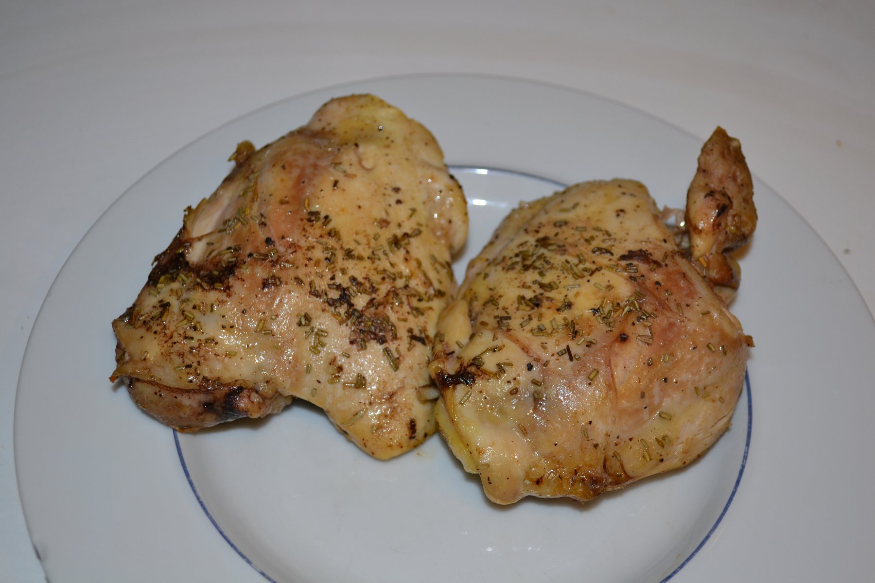 Place thighs meaty side up in a baking dish. Sprinkle with rosemary. Drizzle a small amount of olive oil over thighs.