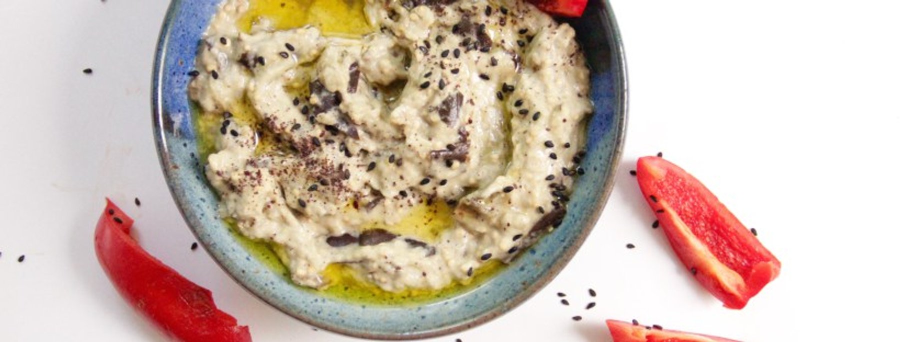 ROASTED EGGPLANT DIP WITH LEMON ZEST, TAHINI AND SUMAC