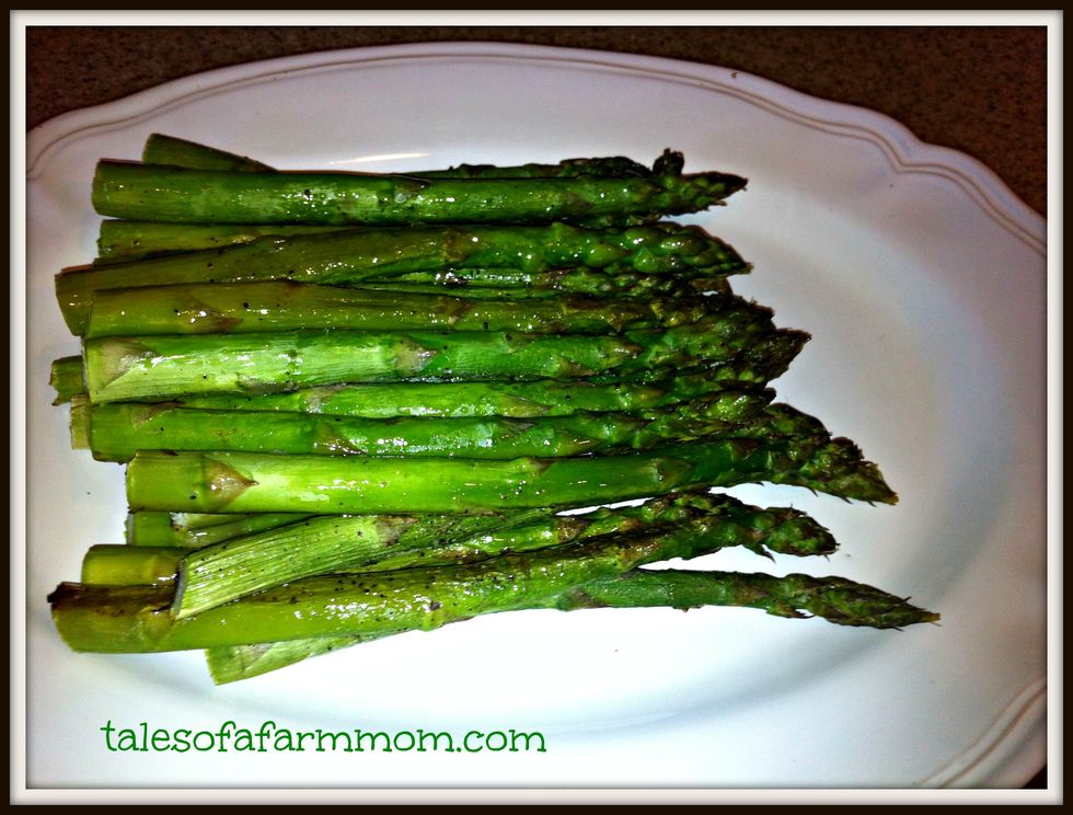 3. Place asparagus on a cookie sheet and drizzle with the olive oil
