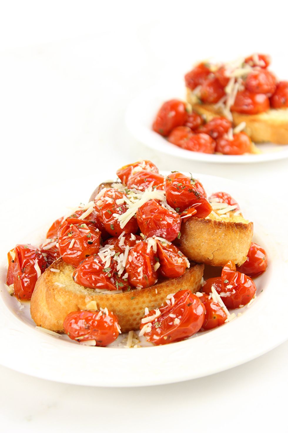 Roasted Garlic Grape Tomatoes, done in 15 minutes and a perfect Appetizer or more! Great for your holiday parties!