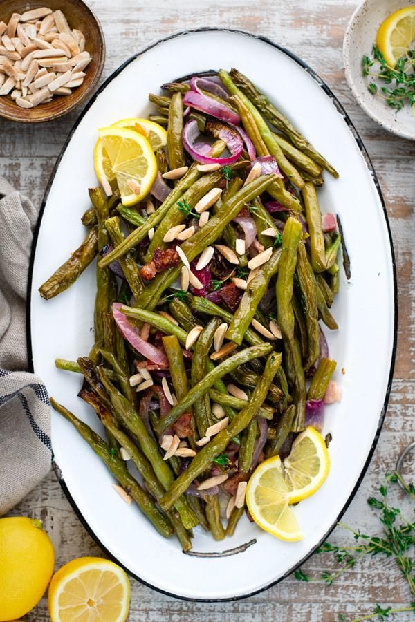 Oven-roasting is the best way to make fresh green beans taste amazing! These crispy roasted green beans pack a flavorful bite, thanks to smoky bacon, zesty red onion, savory garlic and bright lemon juice. Finish the dish with crunchy almonds and fresh herbs for an easy side dish that pairs nicely with chicken, steak, fish, and almost any other meat-based entrée!