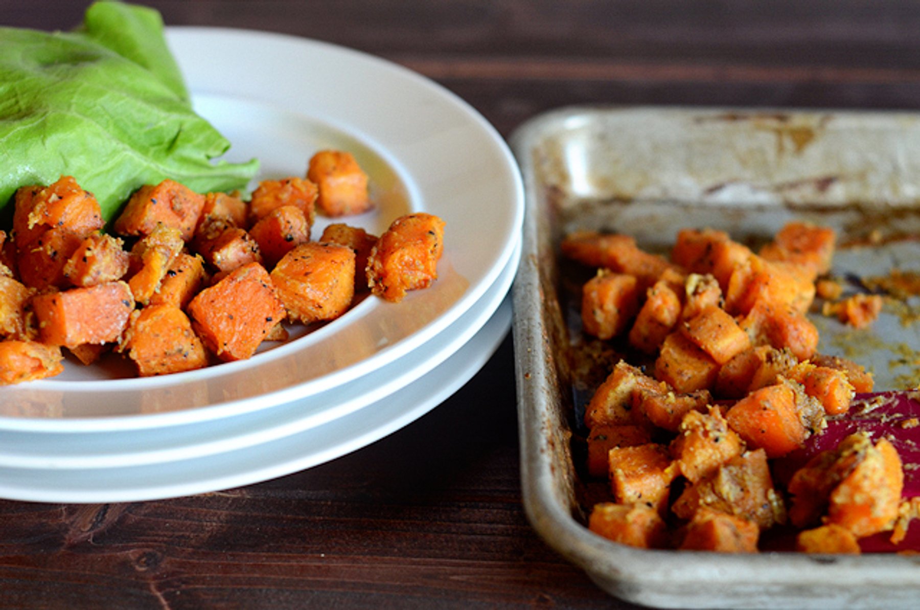 Preheat oven to 400. Peel and cube the sweet potatoes and place in a large bowl. Drizzle 2 Tbsp of the olive oil on the potatoes and toss to coat. Pour onto a baking sheet in one layer. Roast at 400 for...