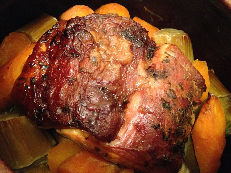 1.Make small cuts in the pork and stuff them with the garlic cloves - around 4-5. Add a couple of peppercorns.