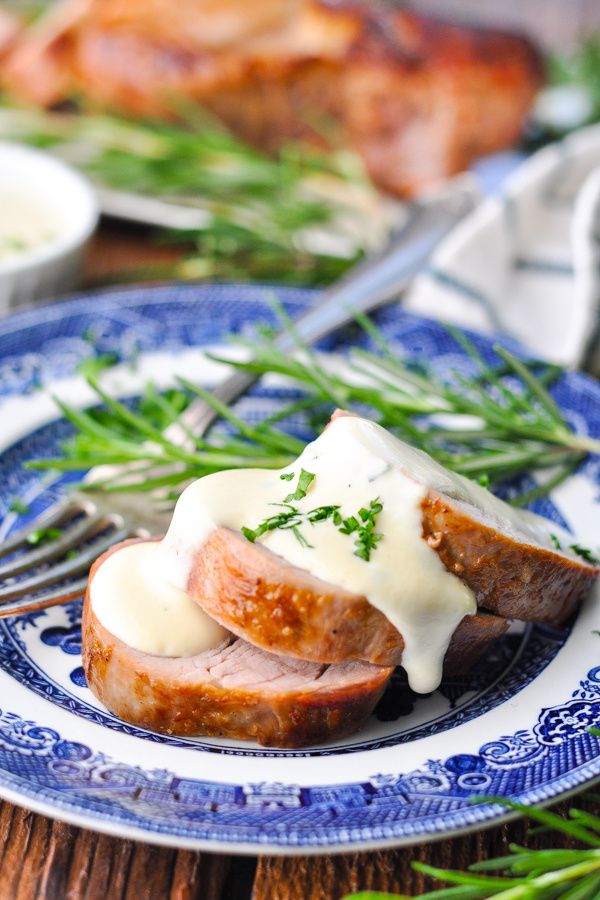 Tender and juicy roasted pork tenderloin is paired with a creamy mustard sauce for an easy dinner that's full of flavor. Best of all, this dish only requires 10 minutes of hands-on prep time! You'll love the crispy exterior of the marinated pork, which stays moist and flavorful when roasted in a very hot oven.