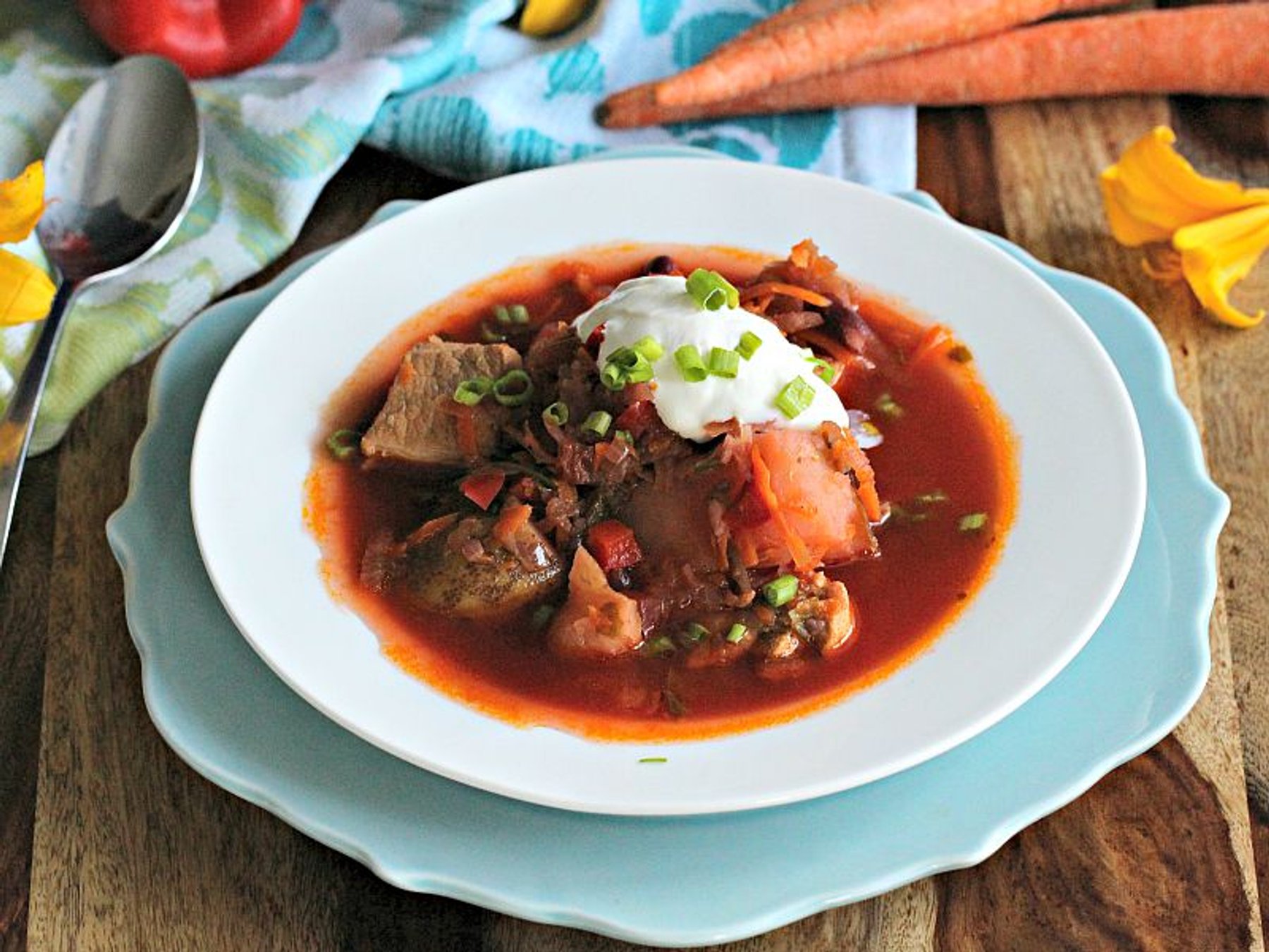 Roasted Red Beet Bean Soup with Pork