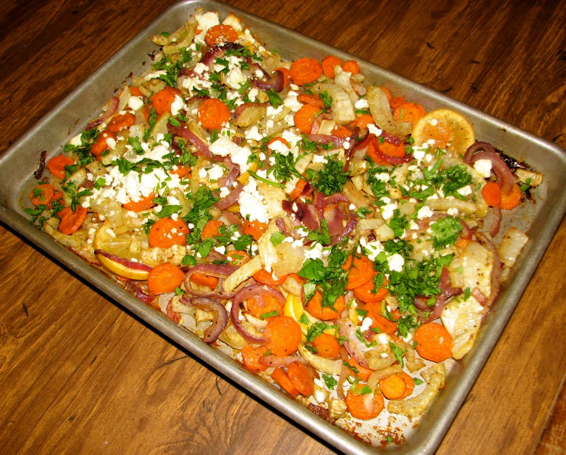 Yesterday I shared a recipe for Thai Roasted Green Fish so, for the next two days, I will share the two sides I made to go with it! Today it's roasted veggies with feta cheese. Is there anything betta than feta? This is not your run of the mill roasted veggie recipe. Fennel, onion, carrots and lemon (yes, I said lemon. You have not lived until you've eaten roasted lemon. Trust me.) are tossed with cumin and coriander then roasted and sprinkled with feta and cilantro. It is the b