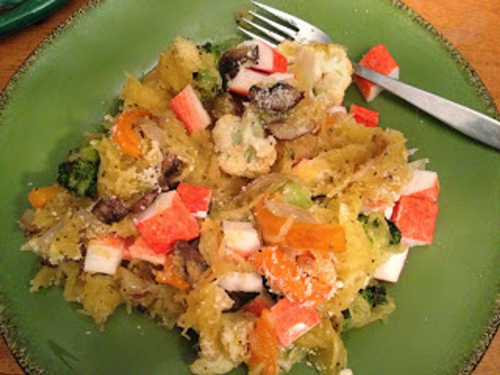 Roasted Spaghetti Squash and Assorted Veggies with Parmesan Cheese