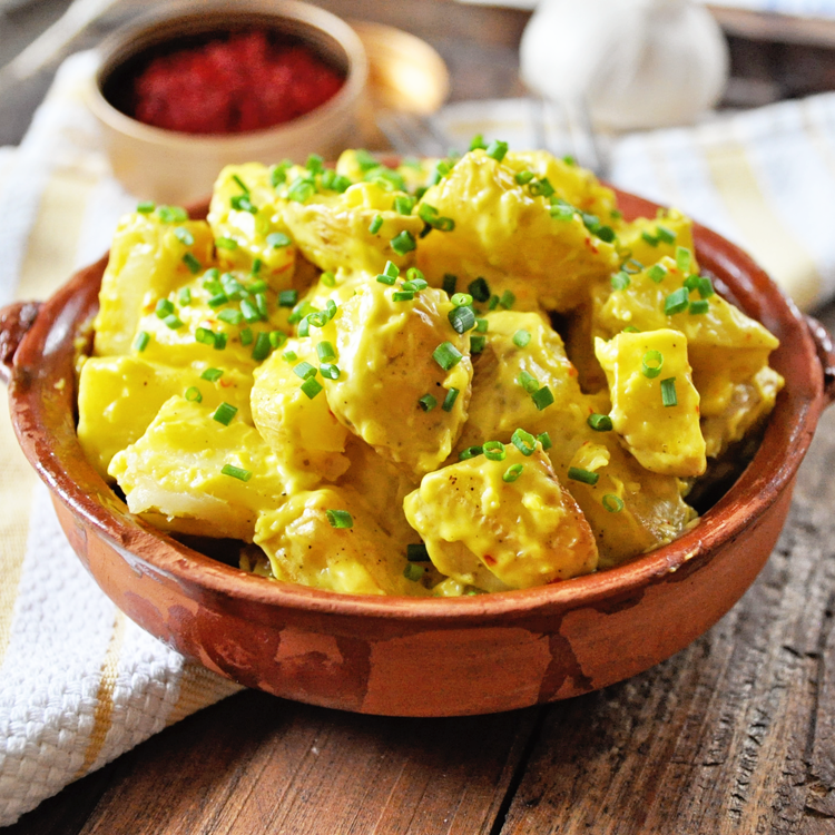 These Roasted Spanish Potatoes with Saffron Garlic Mayonnaise are an absolute stunner. Loaded with so many great flavors, easy to make and done in about 30 minutes. You can serve these potatoes as a tapas appetizer or as a side dish. Either way you go, you will fall in love with these amazing potatoes.