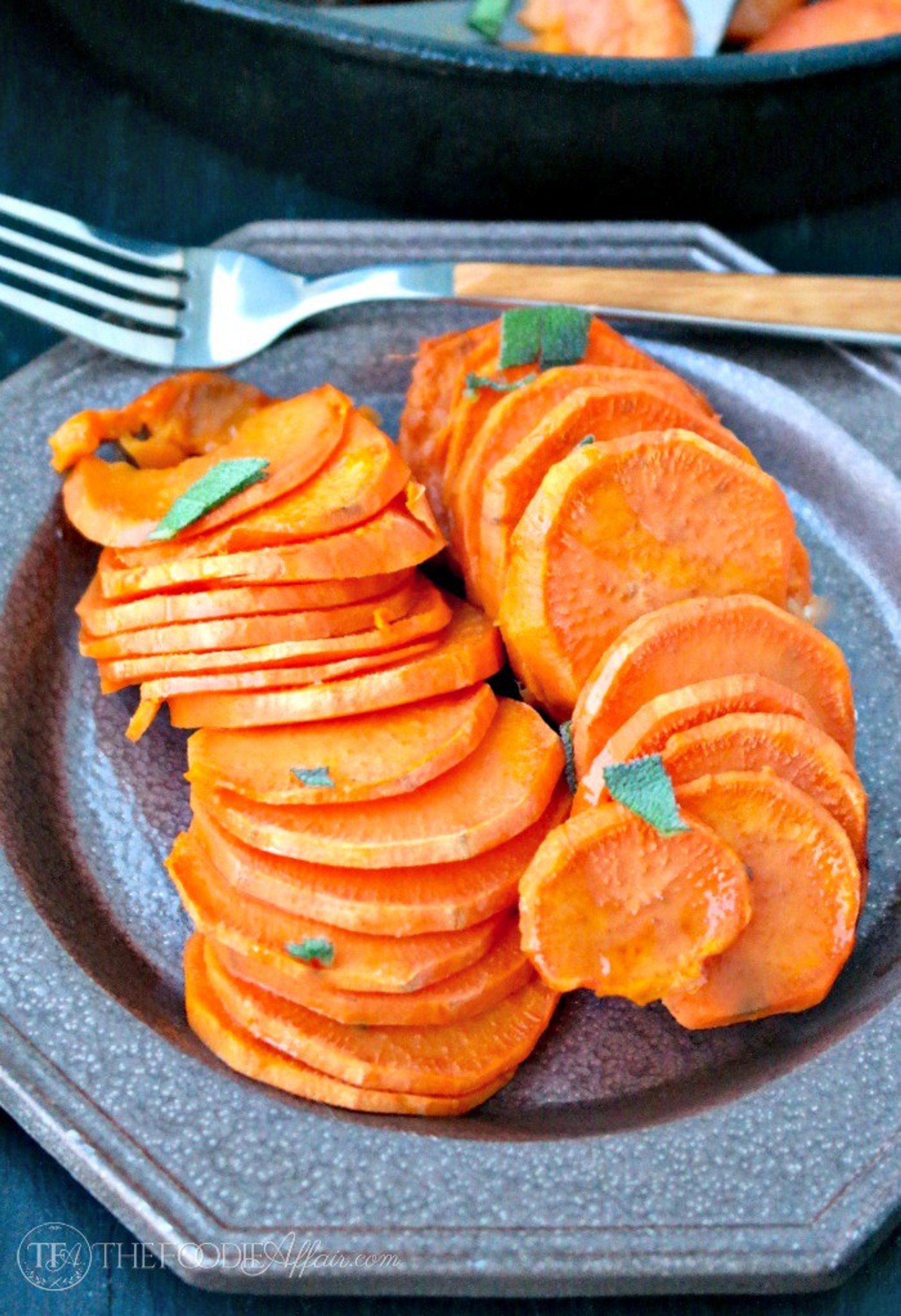 This simple dish of roasted sweet potatoes with sage, butter and honey make a delicious side dish to your Autumn meals.
