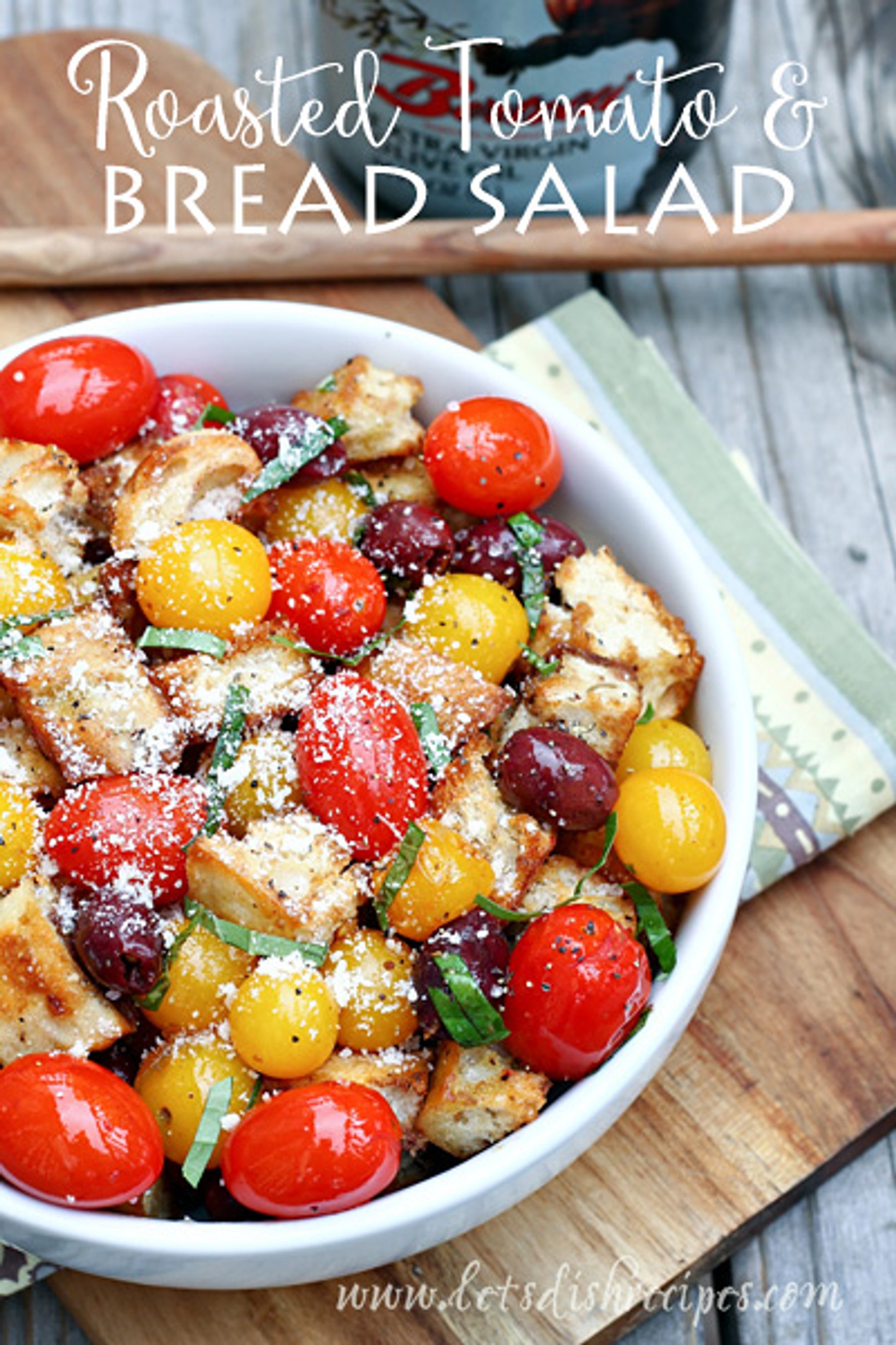 A classic Italian salad made with toasted bread cubes, roasted tomatoes, olives and an olive oil and balsamic vinegar dressing.