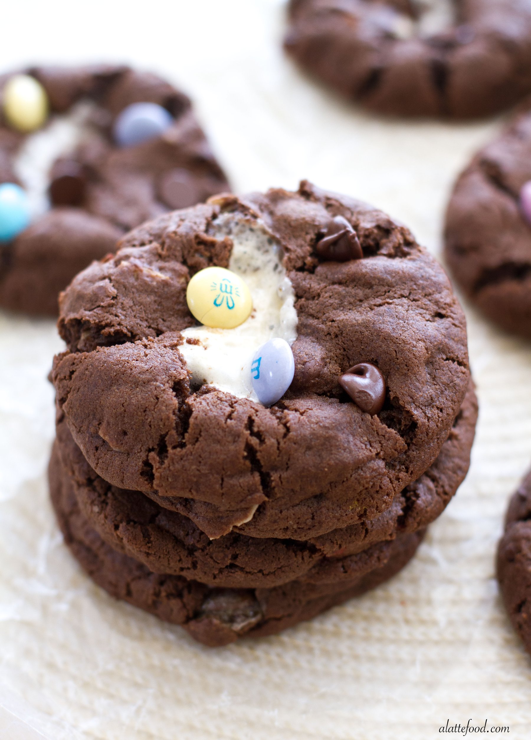 These double chocolate cookies are filled marshmallows, chocolate chips, M&Ms, and almonds! They’re so good.