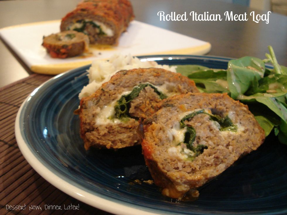 Spinach & cheese is rolled inside of a meatloaf topped with marinara sauce to make this meatloaf unique, pretty to look at, & absolutely delicious!
