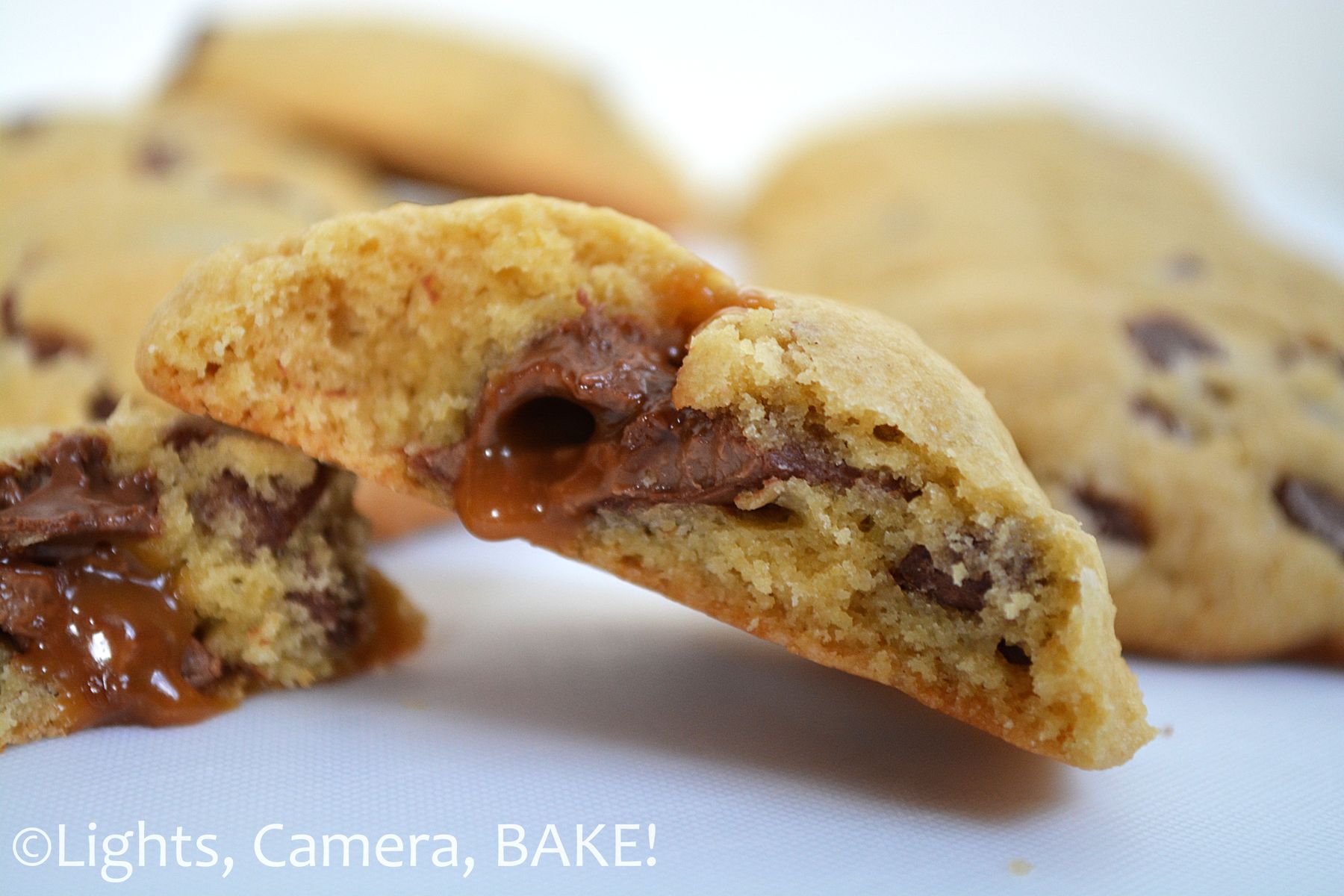 Rolo Stuffed Chocolate Chip Cookies are thick and chewy chocolate chip cookies with a Rolo hidden in each one for extra chocolate and a burst of caramel.
