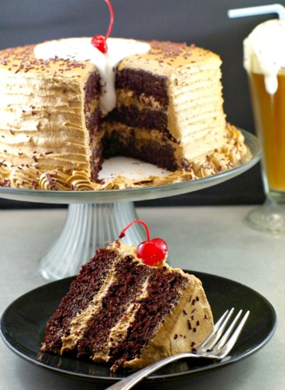 Root Beer Float Cake with Root Beer Whipped Cream Buttercream