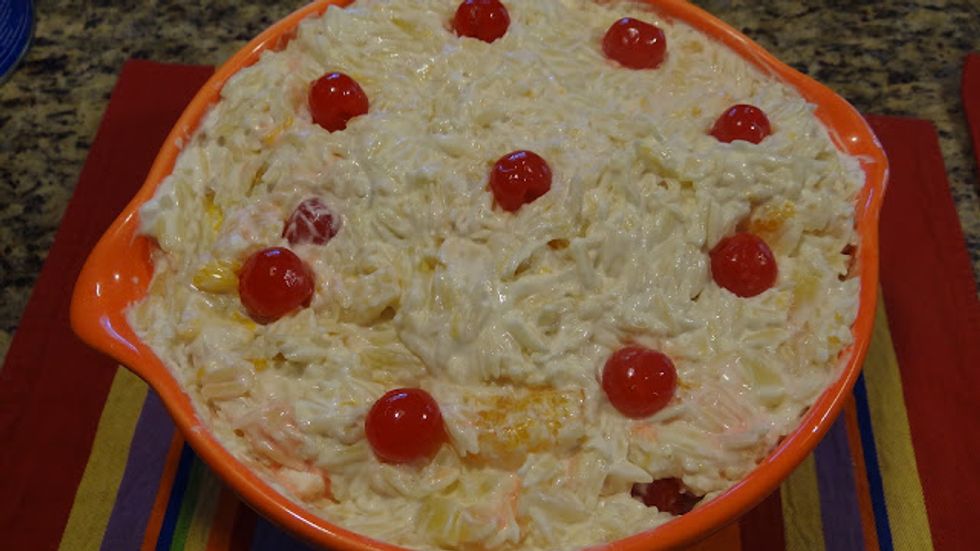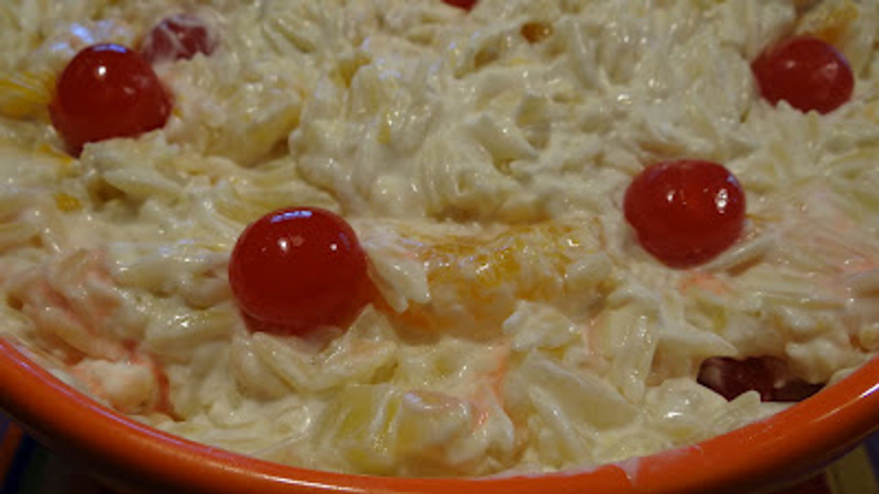 I learned how to make this yummy and filling fruit and macaroni salad when I was just a newlywed. Whenever I make it people ask for the recipe. It is fruity and whip creamy and has rice shaped little macaroni bits with a custard and whipped cream sauce to sweeten it up. Top it with Maraschino cherries and it is not only beautiful to serve, but you'll get lots of compliments when your guests try it!