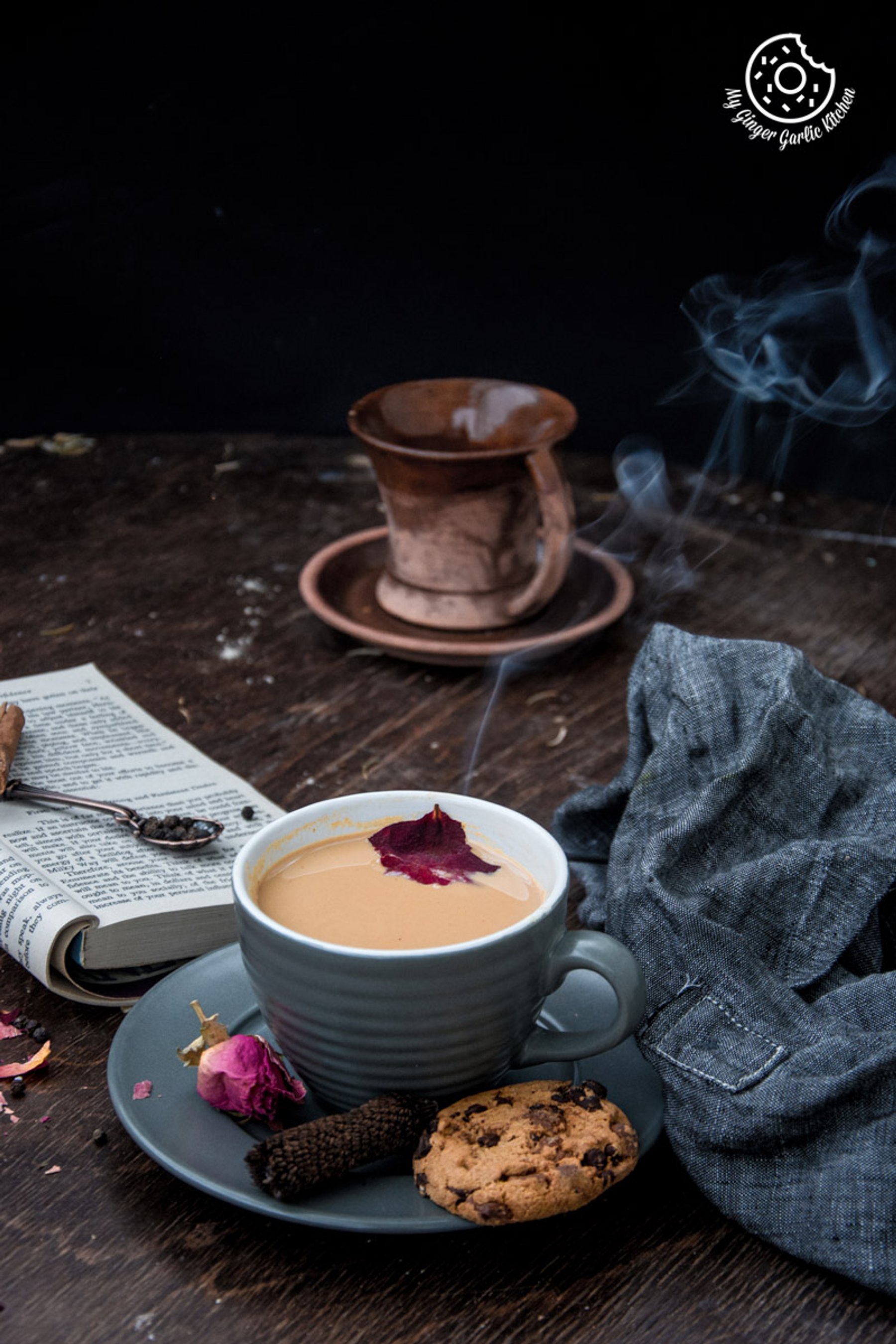 Rose Masala Chai | Rose Tea. The flavors in this tea are so deliciously striking. The chai is enriched with a good amount of spices and rose petals. This chai is not so different than a basic masala chai, and also very simple and very delicious. If you love tea, then you would love to wake up to this one! :)