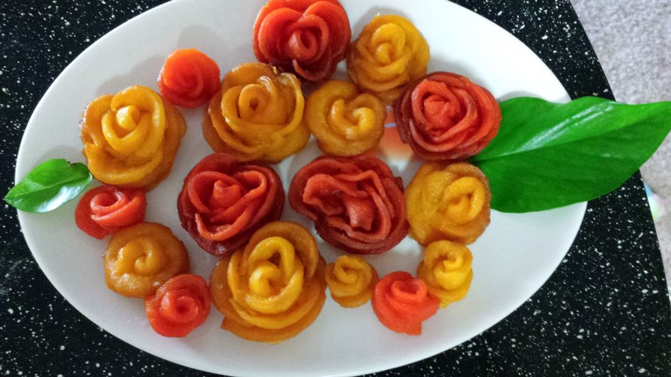 A rose shaped dessert which can be made for all parties.simple to make and tastes great.