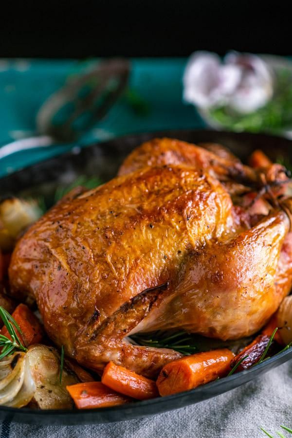 The best oven roasted chicken recipe starts with plenty of fresh rosemary and thyme, lemon, garlic, vegetables and potatoes. With a golden brown exterior and flavorful, juicy meat, this easy dish is totally irresistible! Serve the crispy roast chicken with a side of biscuits, cornbread or pumpkin muffins for a cozy dinner that the whole family will enjoy.