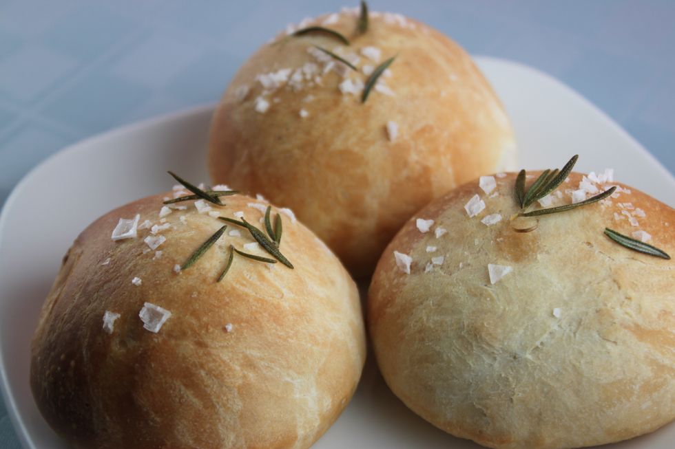 Melt the butter in a small bowl in the microwave. Brush over the top of each roll. Top with the rosemary pieces and...