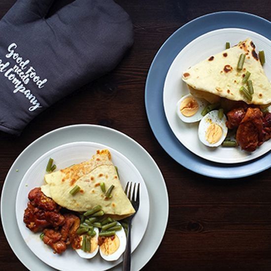 This recipe shows how you can make roti with chicken, green beans and egg. It's a delicious meal that is eaten a lot in Suriname. You may eat it with your hands.