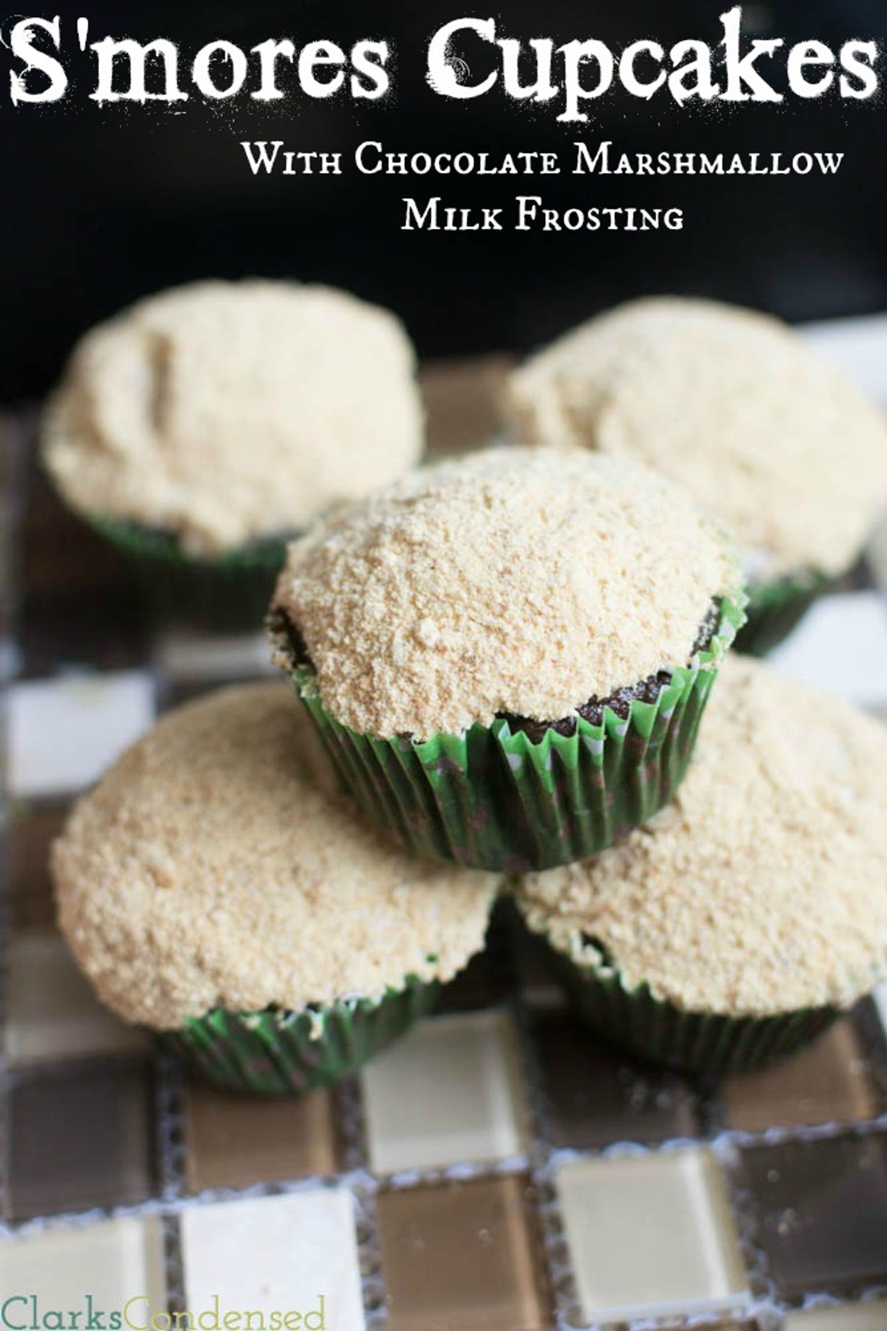 S-mores Cupcakes with Chocolate Marshmallow Milk Frosting