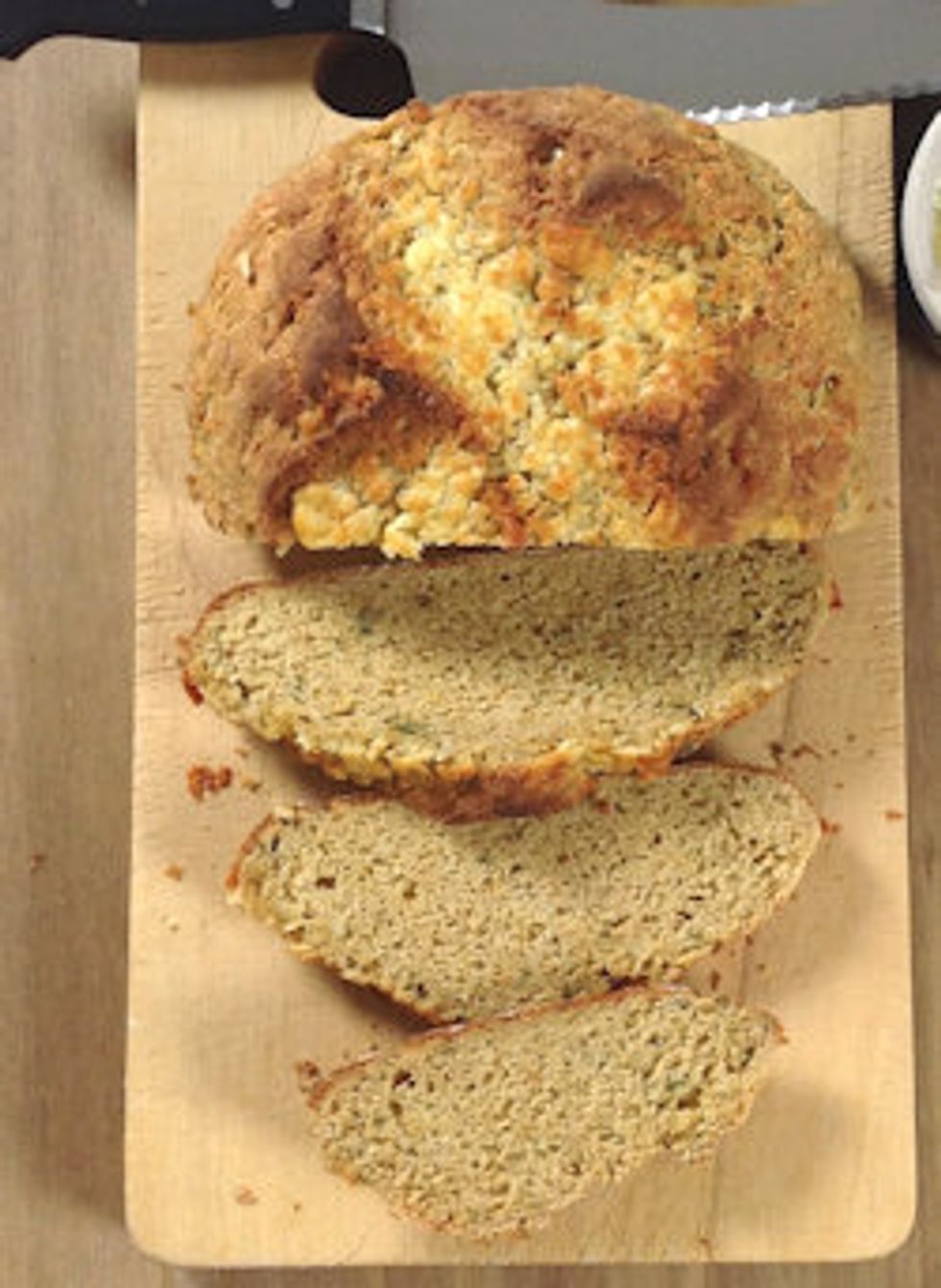 Sage Irish Whiskey Cheddar Soda Bread: added Irish whiskey cheddar, sage and whole wheat for extra color and flavor. Serve this bread warm.