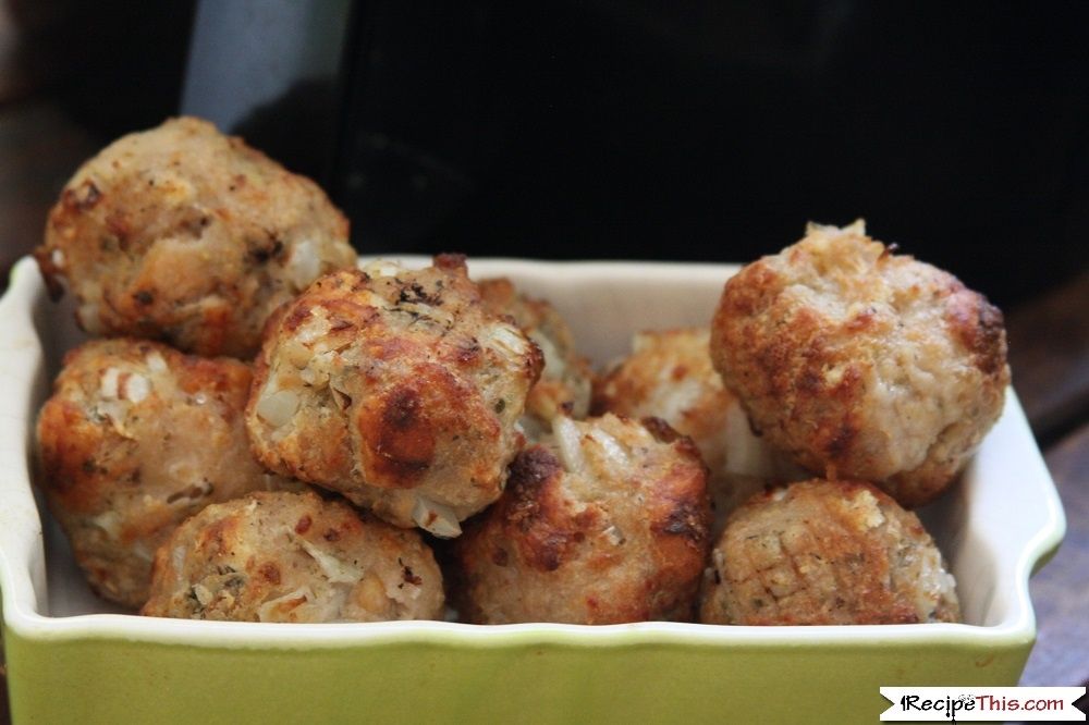 | Delicious Sage & Onion Stuffing Balls in the air fryer. Make ahead your own air fryer stuffing and then cook your homemade stuffing in the air fryer when you're ready. Loaded with your favourite stuffing ingredients including butter, sausage meat and bread. This is a true family roast dinner favourite in our house. |