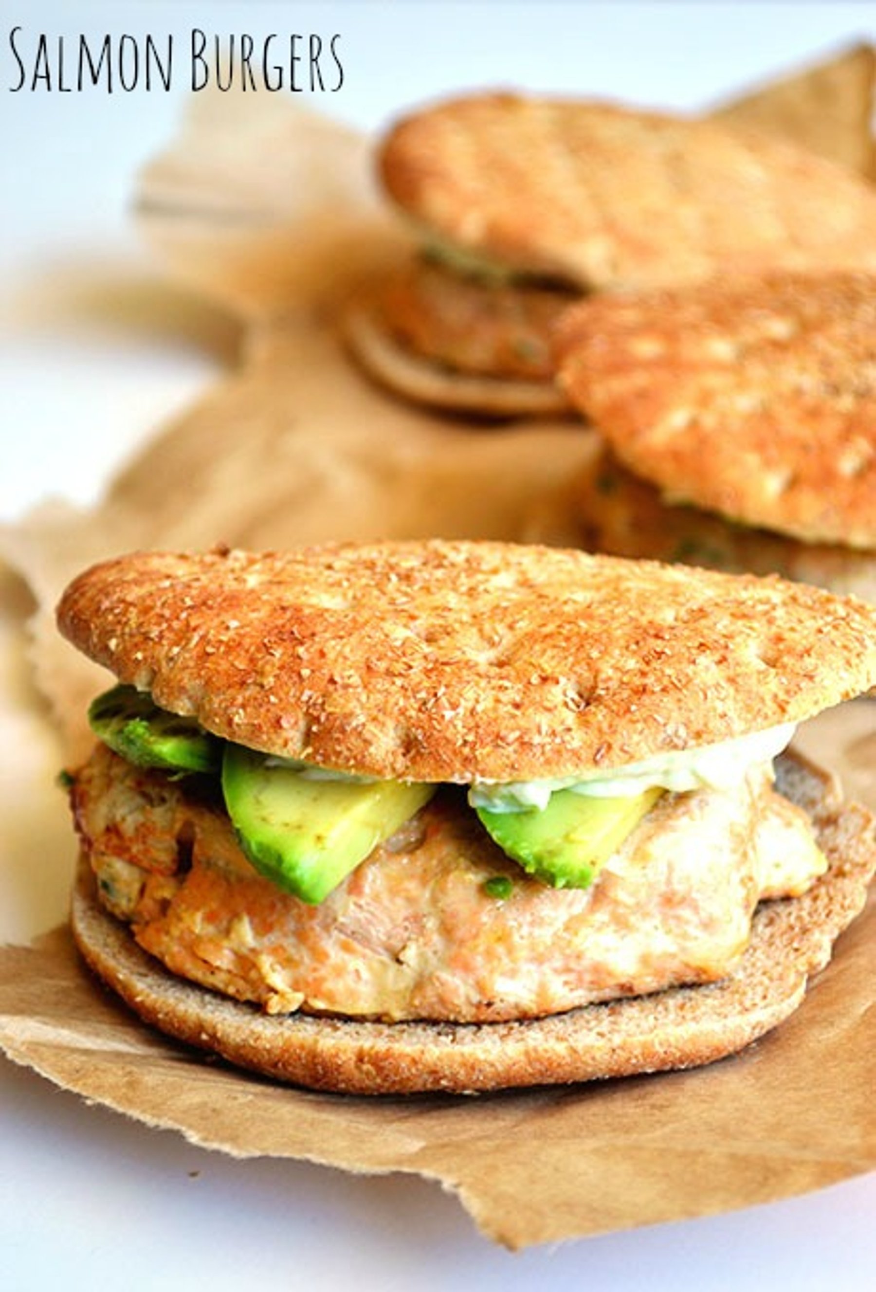 These salmon burgers are topped with fresh slices of avocado and a cool, refreshing cucumber spread making this a perfectly soothing meal.