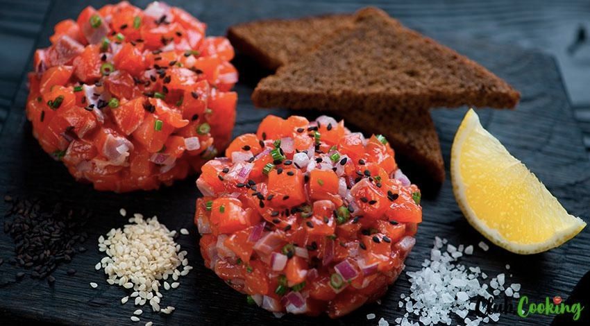 Salmon tartare is a dish that is both light and delicious. It's easy to cook, it looks very upscale and it's a great way to start a romantic dinner night with your significant other.