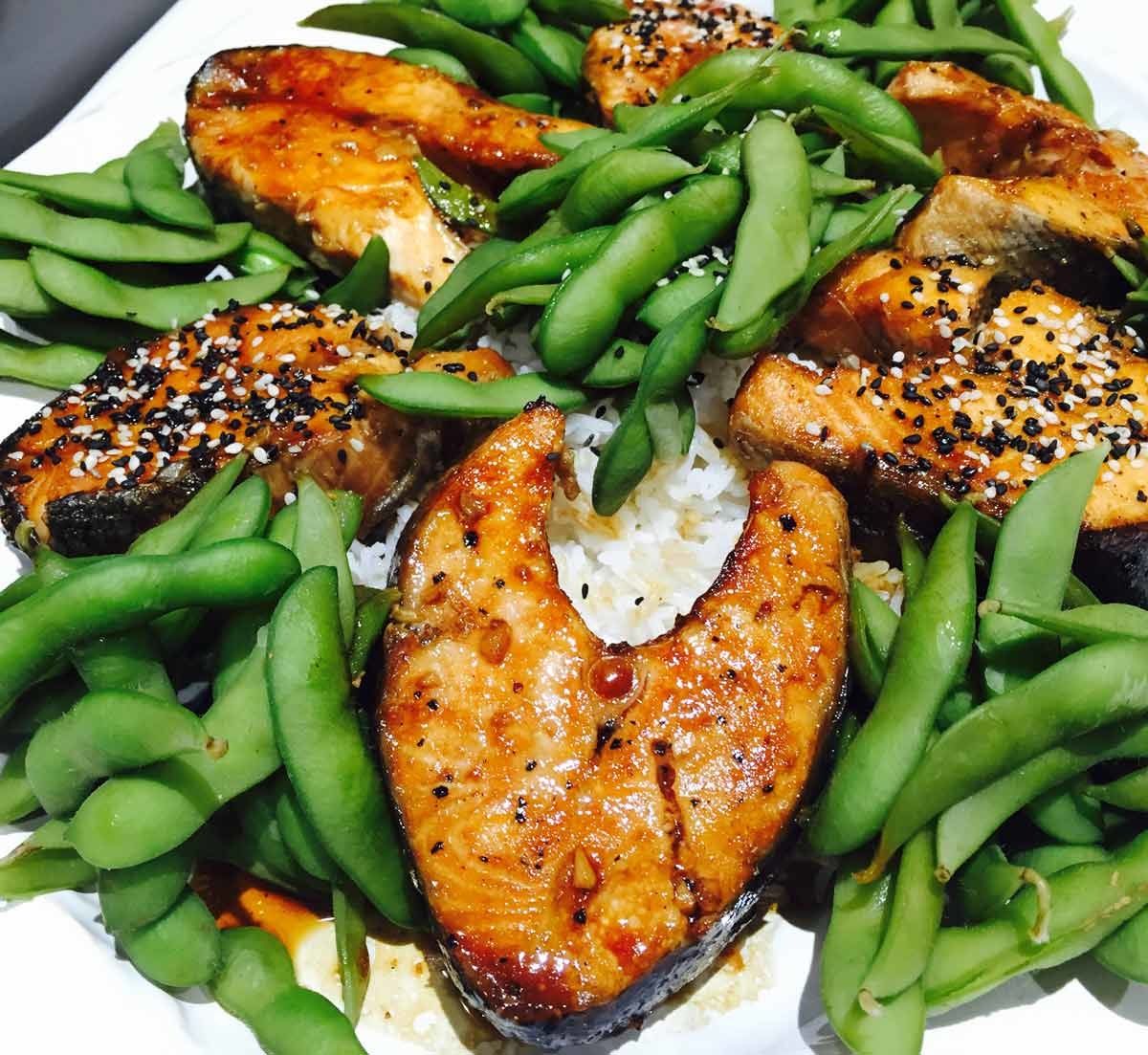 I am quite excited to share this dish with you and I cannot really recommend this Salmon teriyaki with edamame and rice dish enough as it is really fragrant and so truly yummy. In fact it's so yummy that you might end up eating too much. You will see the way it disappears! Gine in 60 seconds or even less.