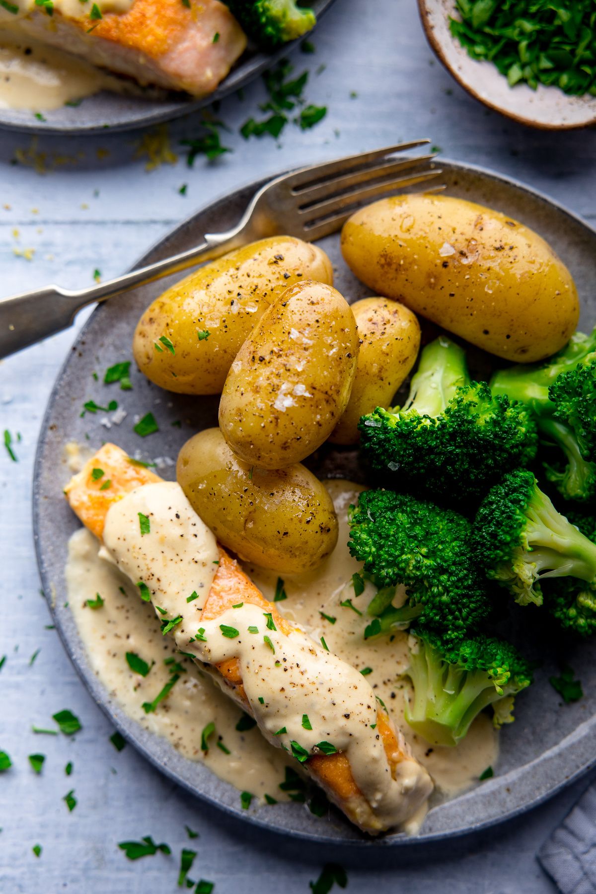Salmon with Creamy White Wine Sauce Nicky CorbishleyJune 13, 2020 134 Kitchen SanctuaryTender, fall-apart pan-fried salmon in rich, creamy, white wine and garlic sauce. All cooked in one pan, this dish has a few little extras to make the sauce over-the-top tasty.Salmon with Creamy White Wine SauceSee the full directions on my site