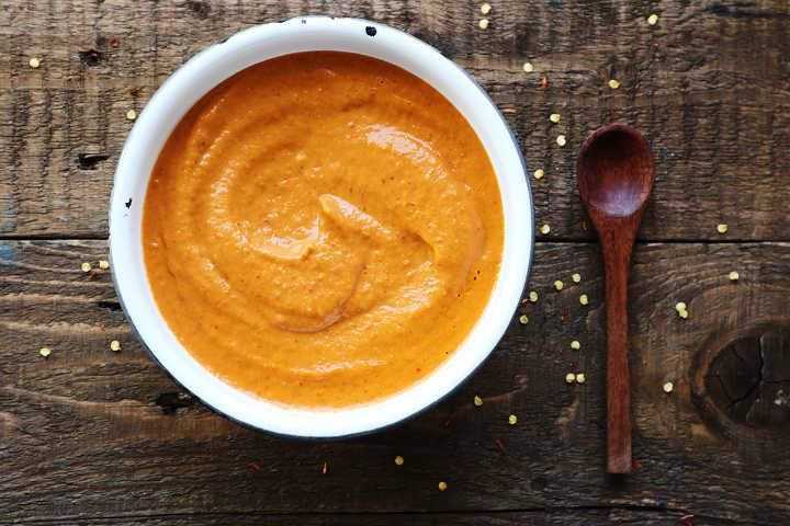Salsa Taquera, a tomato based, fiery, garlicky salsa prepared with dried árbol peppers. This type of salsa is served at taco stands throughout Mexico. It's a good one.