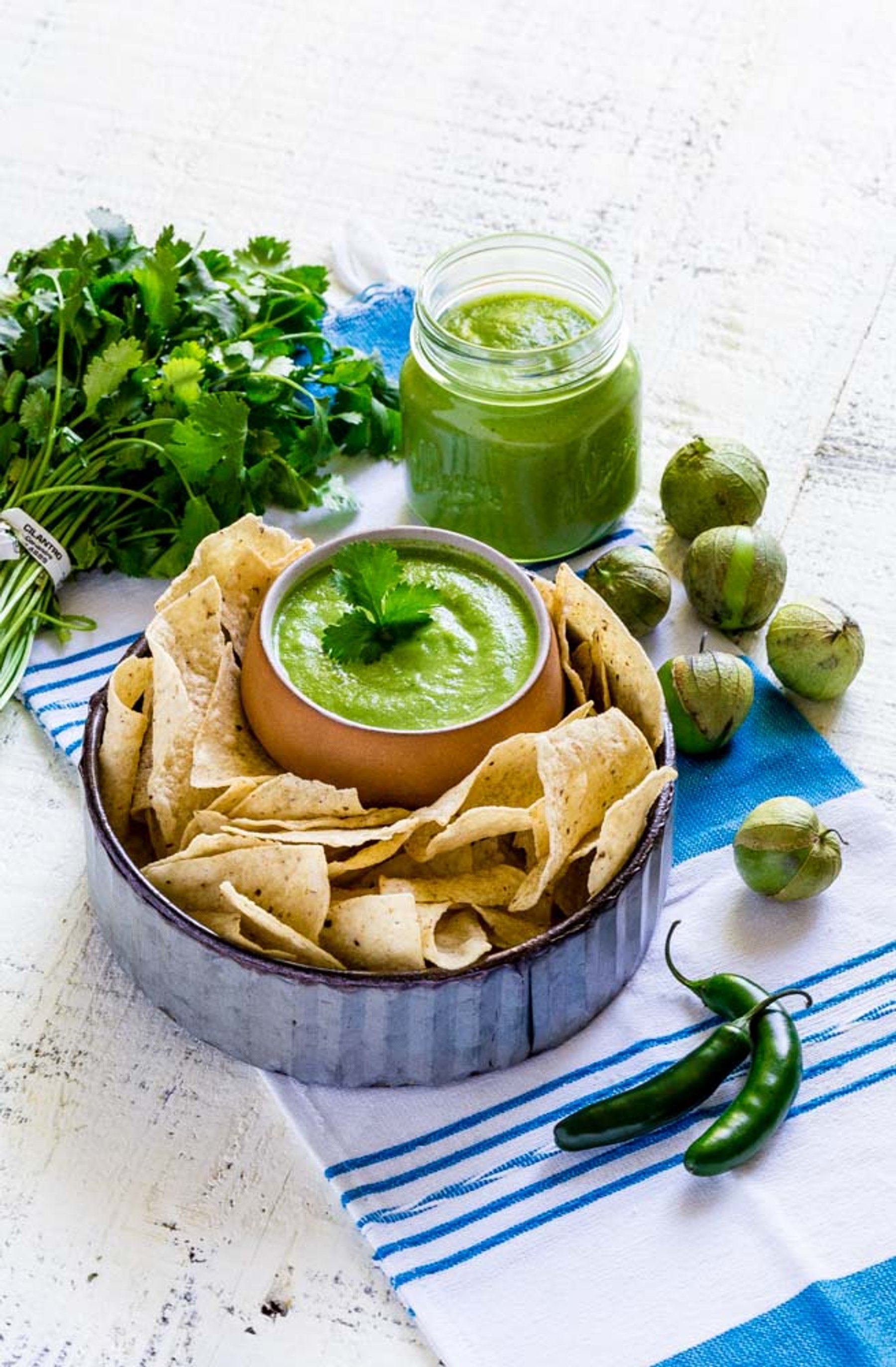 Flavorful salsa verde is a must-make condiment for chips and salsa. Spoon it over Mexican specialties. Make this easy tomatillo avocado salsa in 15 minutes!