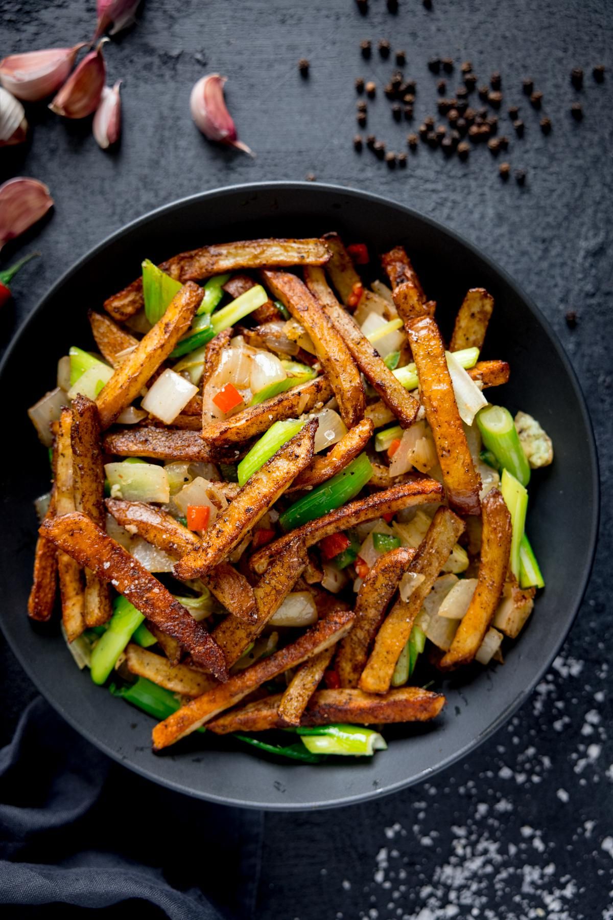 Salt and Pepper Chips Nicky CorbishleyJune 14, 2021 25 Kitchen SanctuaryThese salt and pepper chips make a fantastic spicy side dish - crispy chips tossed together with Chinese five spice, garlic and chillies.Salt and Pepper ChipsSee the full directions on my site