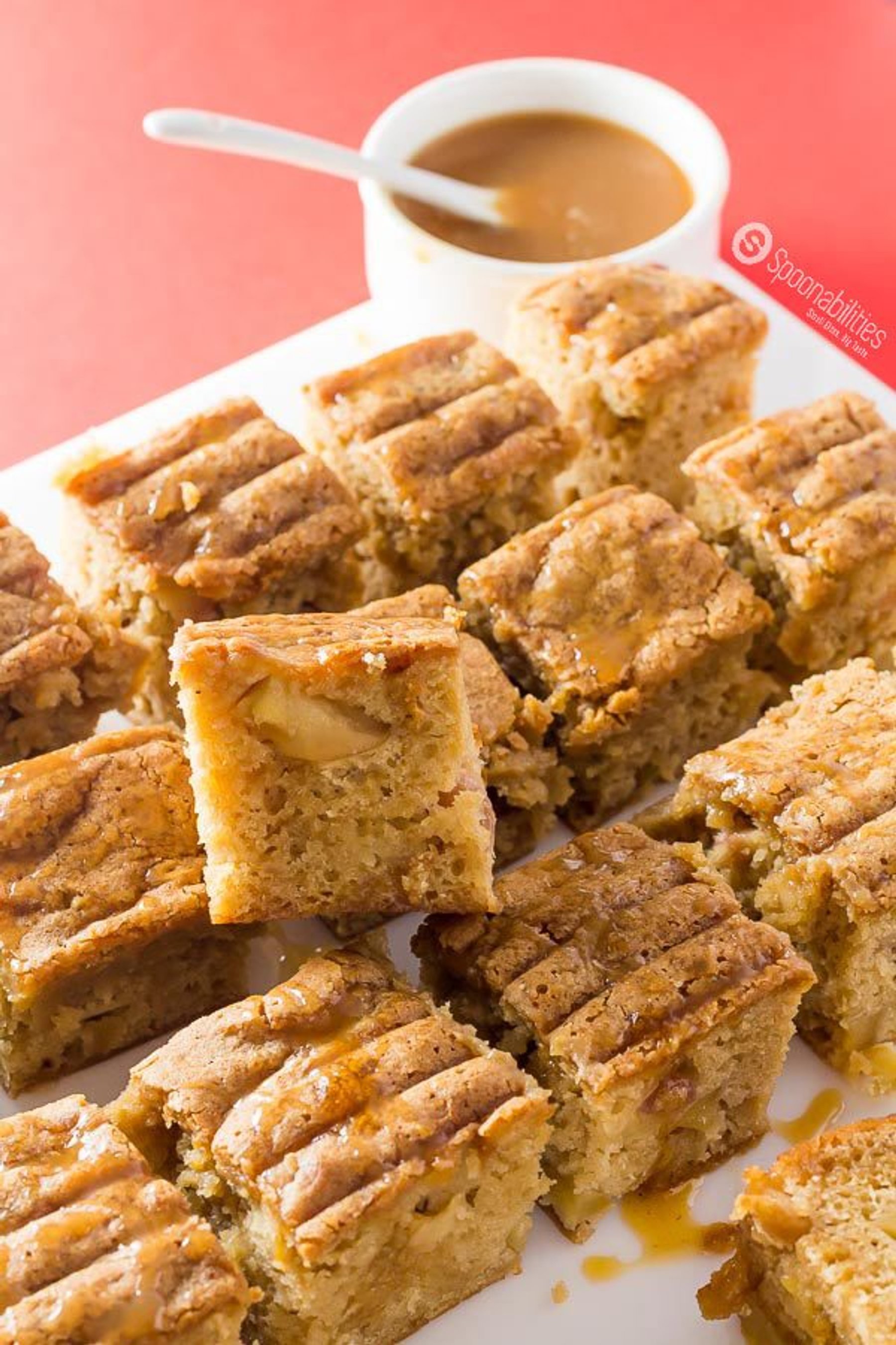 Gooey, chewy, moist & so addictive, these Salted Caramel Apple Blondies have pieces of apples that are simmered in Coop’s Salted Caramel Sauce. This topping is gluten free, no GMO, no corn syrup, all natural, and made in small batches. You’ll love it!